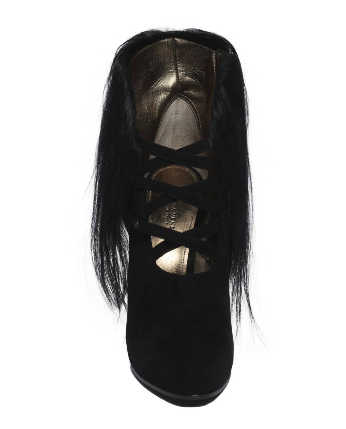 Step out in style with the Women's Fur Heels by Bottega Veneta, expertly crafted in Italy. These ankle-length heels feature a dramatic 5-inch block heel and an elegant almond toe. The luxurious composition includes 100% Kidassia fur, a suede exterior, and a combination of Upper: 50% Goatskin Leather, 50% Kidassia Fur; Lower: 100% Calfskin Leather. With multi-front straps and a side zip closure, these shoes are designed for evening events and styled with a nod to 90s fashion trends. Specialist clean only.