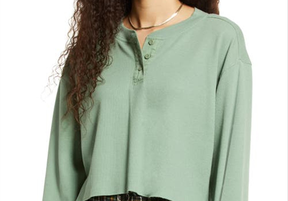 Material de mistura de algodão | Design térmico | Estilo Henley | Cor verde Hedge | Marca Nordstrom | Tamanho grande | Tecido durável | Ajuste confortável | Fácil de cuidar | Mangas compridas | Carcela com botões