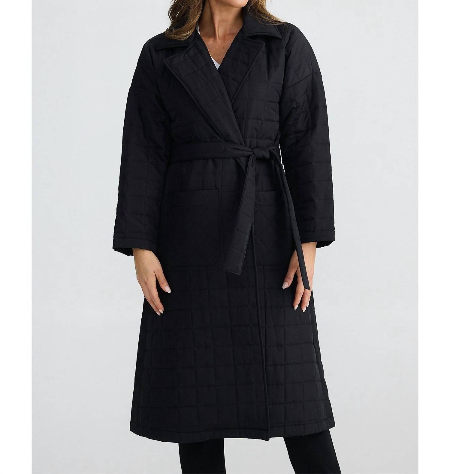 Cozy, cute and timeless. The puffer jacket that will keep you warm all season long. Wrap yourself in the Bedford Longline Puffer Jacket by Brave + True, a chic blend of style and functionality. This black, knee-length puffer boasts a quilted textured polyester fabric complete with long sleeves and a collar neckline for a cozy winter-ready design. It features a practical tie closure and convenient front hip patch pockets. Perfect for minimalist vacation looks, this jacket makes winter layering effortlessly fashionable.