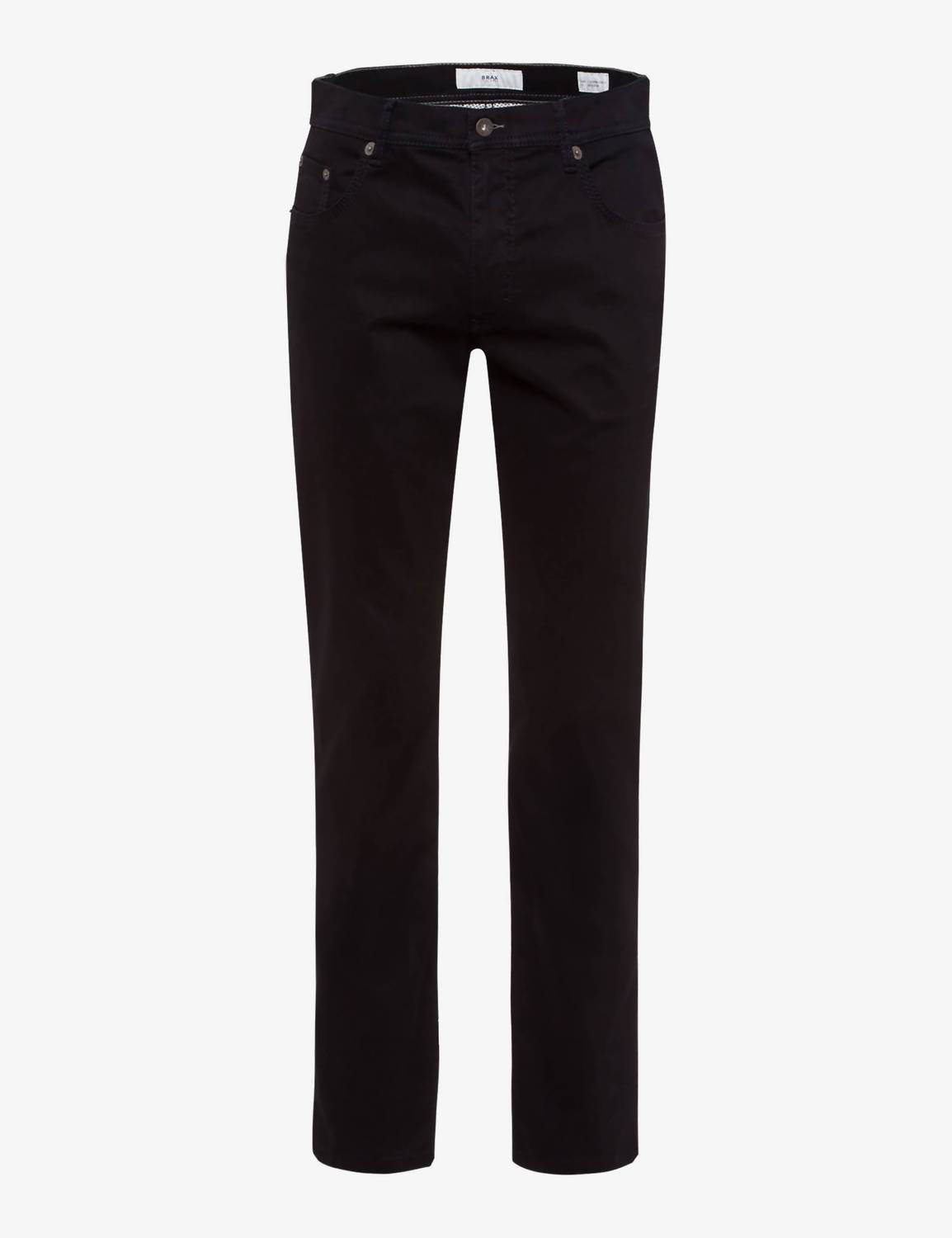 Crafted by Brax, the Men's Cooper Fancy Five-pocket Pants in sleek black embody a sophisticated monochrome style. Made from a skin-kind cotton mix and enhanced with innovative elastane for superior comfort and movement, these pants offer a luxurious feel with a soft, satin finish. Featuring a straight leg design with a regular mid-rise fit, they boast a high-quality button closure and classic five-pocket style, including slit pockets, patch back pockets, and a handy coin pocket. Easy to care for, simply machine wash and tumble dry for convenience.