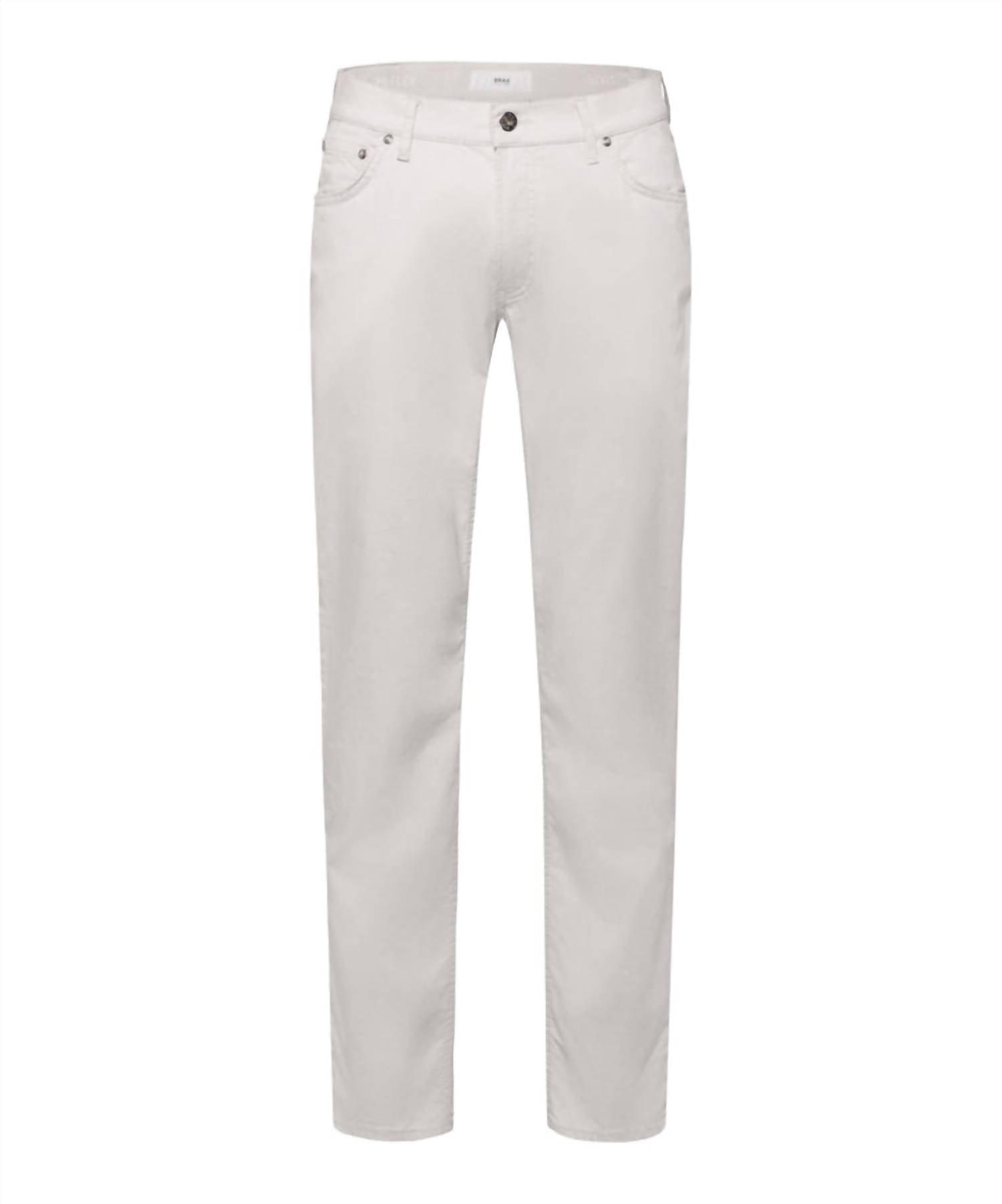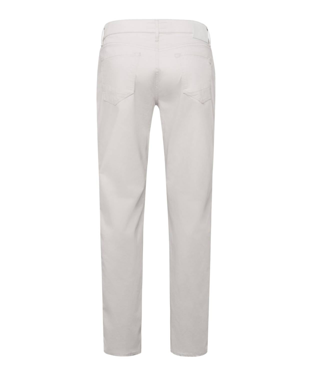 Get ready for your next adventure with the Men's Marathon Cooper Fancy Five Pocket Pants by Brax. Designed in a minimalist solid bone color, these pants offer a regular fit with a straight leg style and mid-rise waist, ensuring both comfort and a sleek look. Crafted from the exclusive Marathon fabric, they boast a breathable and skin-friendly cotton elastane blend for flexibility and a soft feel, complemented by embroidery and imitation leather trims. Featuring a secure button closure and multiple pockets, these pants are machine washable and suitable for tumble drying, ideal for travel or summer occasions.