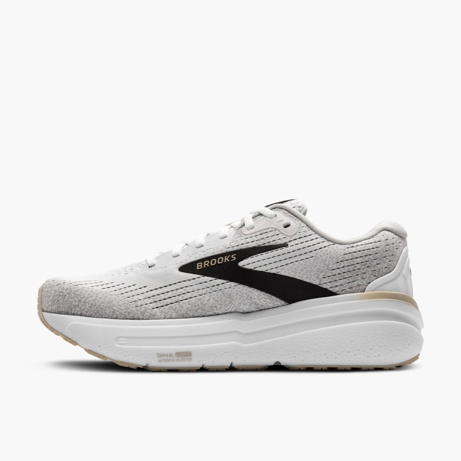 Entre em sintonia com o conforto do Tênis de Corrida Masculino Ghost Max 2 da BROOKS, projetado para corrida e caminhada em estrada. Com um design protetor, este tênis oferece amortecimento máximo e transições assistidas, graças a uma base ampla e robusta que aumenta a estabilidade. O cabedal é predominantemente feito com 54,9% de materiais reciclados, evitando o descarte de 6,18 garrafas plásticas em aterros sanitários. O drop da entressola é de 6 mm e cada tênis pesa 306,2 g (10,8 oz), apresentando um produto certificado CarbonNeutral®, ideal para atletas ecologicamente conscientes que buscam desempenho e sustentabilidade. Este tênis está disponível em uma elegante combinação de cores: Branco/Pelicano/Ostra.