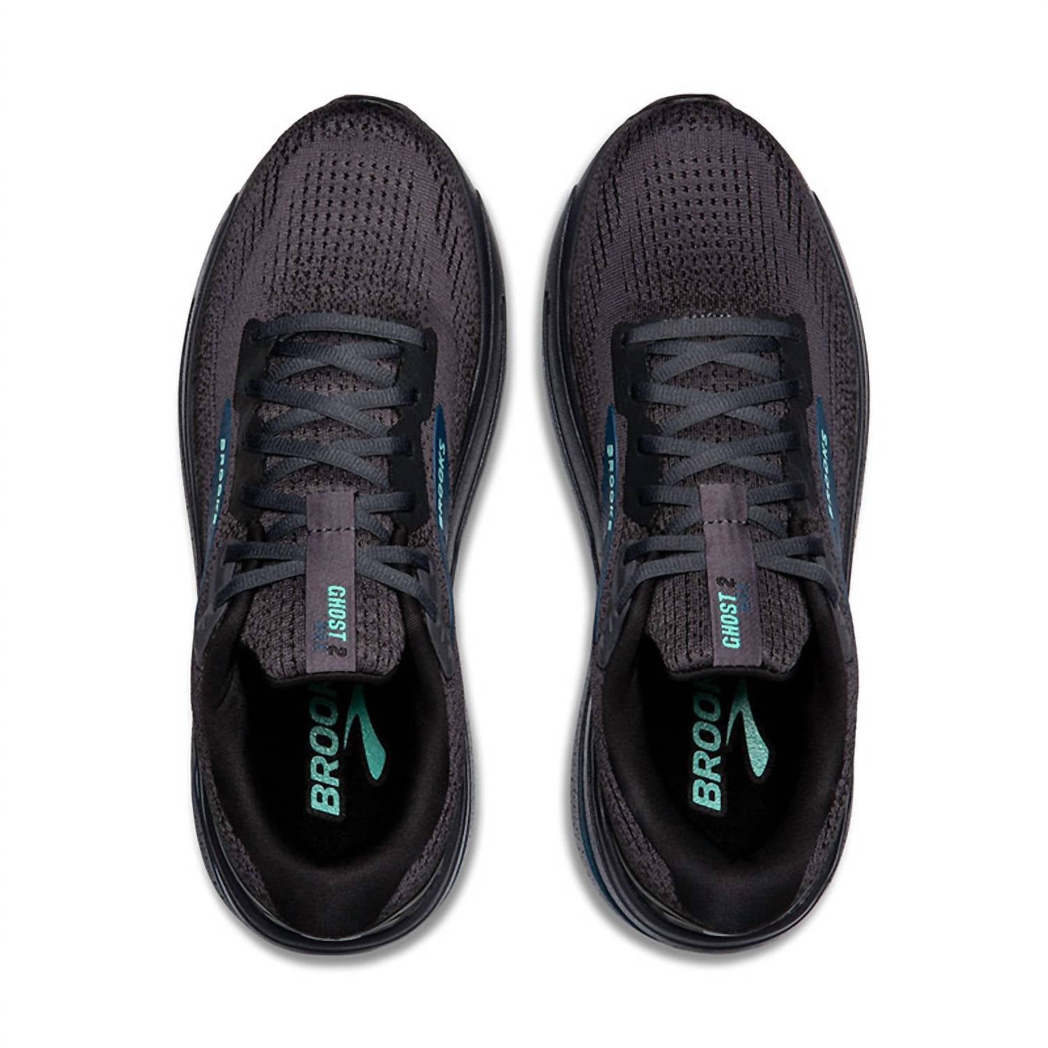 The BROOKS Men's Ghost Max 2 Running Shoes in Ebony/Cockatoo/Blue Sapphire offer a high-stacked cushioning for a soft, smooth, and protective feel during road runs. They are crafted with a rocker shape for easy, assisted transitions and feature a broad base to ensure a stable ride. Sustainably designed, these shoes incorporate 60.1% recycled materials in the upper and are certified CarbonNeutral®. Key specifications include a 6mm midsole drop, a weight of 11.2oz (317.5g), and a wide width for comfort, making them perfect for fitness and athleisure occasions.