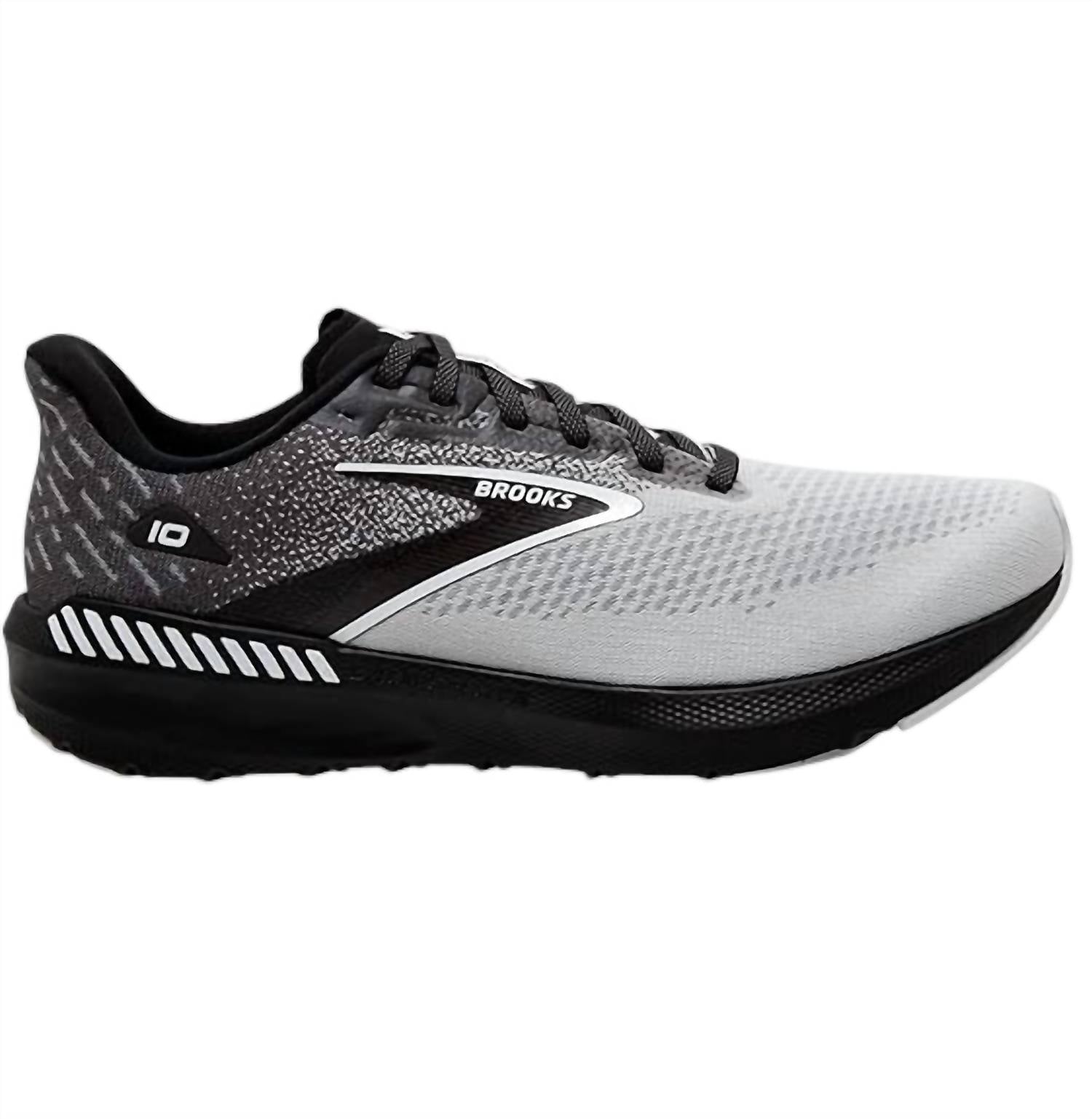 Eleve sua performance de corrida com o Tênis Masculino Launch 10 da BROOKS, projetado para o máximo desempenho e estilo. O tênis elegante é feito de malha em uma elegante paleta de cores preta, perolada enegrecida e branca. Com largura média e bico arredondado confortável, este tênis é perfeito para atletas adultos. Com salto baixo de 3,8 cm a 5 cm, ele proporciona a sustentação ideal sem comprometer a agilidade.