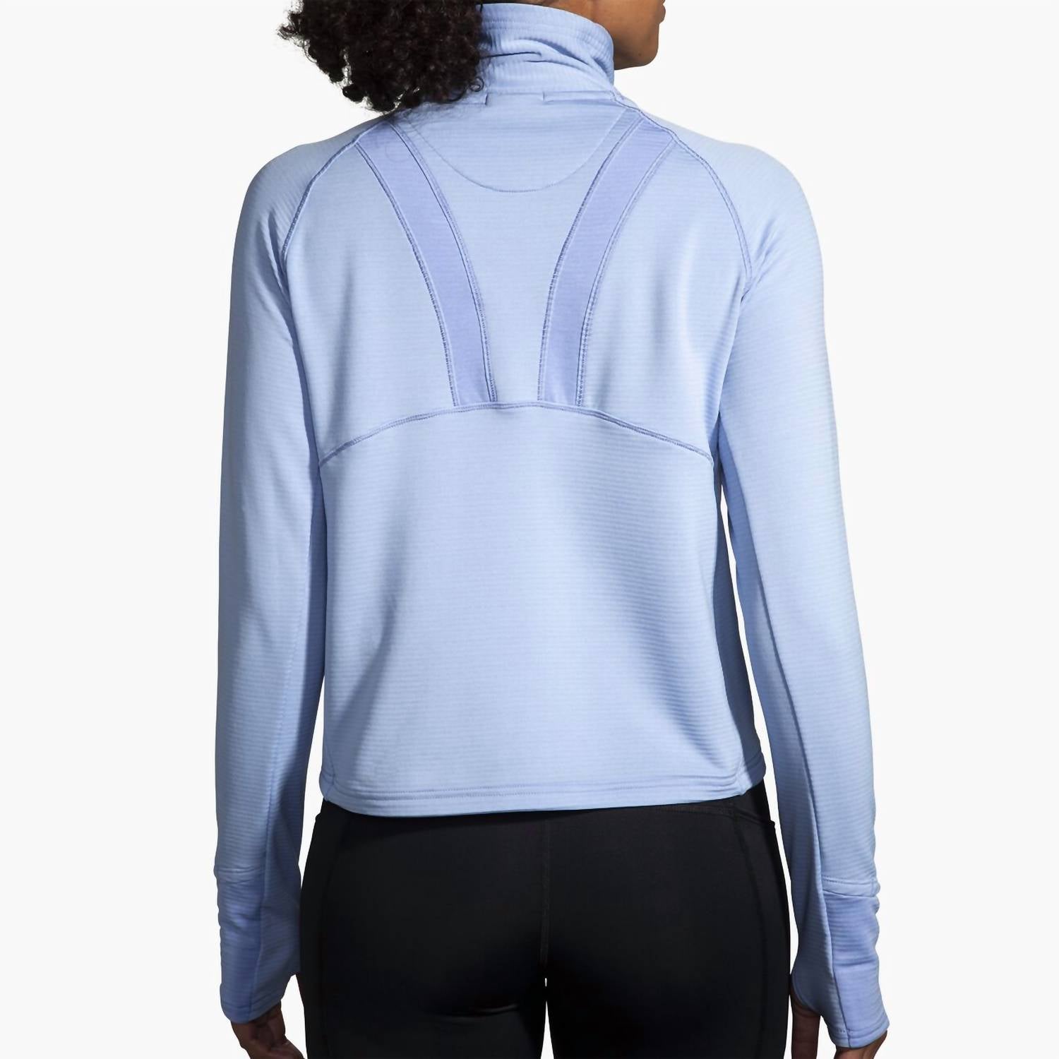 Apresentamos a blusa térmica Notch Thermal de manga comprida 2.0 da BROOKS, a escolha perfeita para roupas esportivas em um elegante tom lavanda/azul-lavanda. Com mangas compridas e gola alta, esta blusa combina estilo e funcionalidade. Composta por 91% poliéster e 9% elastano, oferece flexibilidade e conforto, tornando-a ideal para sessões de fitness ou treino. Desenhada como uma peça de vestir, esta peça com estampa lisa reflete a tendência athleisure, combinando perfeitamente com o seu guarda-roupa de primavera.