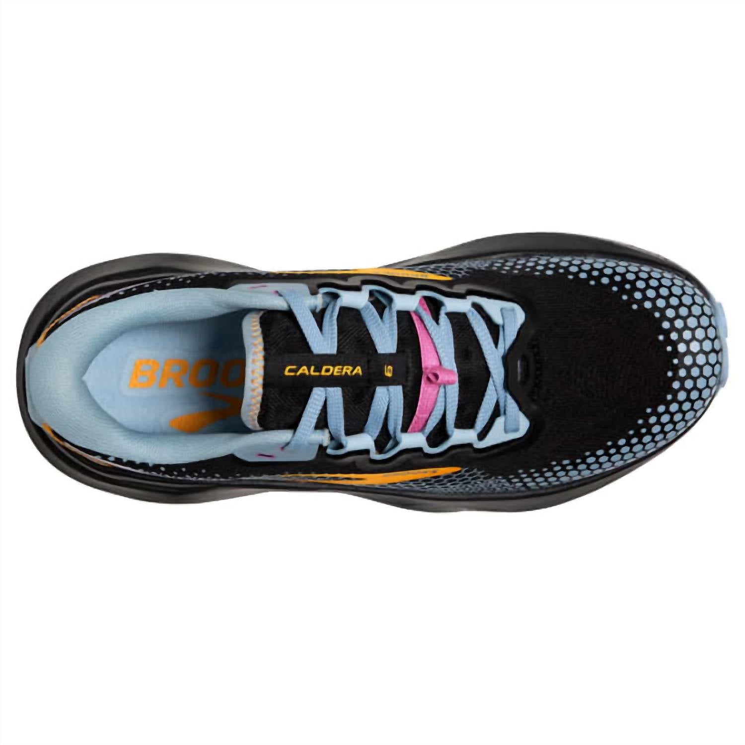 Descubra mais conforto e estabilidade com o TÊNIS DE CORRIDA CALDERA 6 FEMININO da BROOKS, projetado especificamente para entusiastas de trilhas. Este tênis esportivo apresenta um cabedal em malha de ar totalmente novo e de secagem rápida para respirabilidade superior. Beneficie-se da entressola DNA LOFT v3 com nitrogênio e do solado redesenhado, que oferece amortecimento elevado e uma plataforma estável. Com um drop de 6 mm na entressola e pesando apenas 281 g, este tênis oferece um nível de suporte neutro, ideal para quem tem arcos médios a altos e encara trilhas ultra. Cor: Preto/Azul/Amarelo. Largura: Média. Formato da ponta: Redondo.