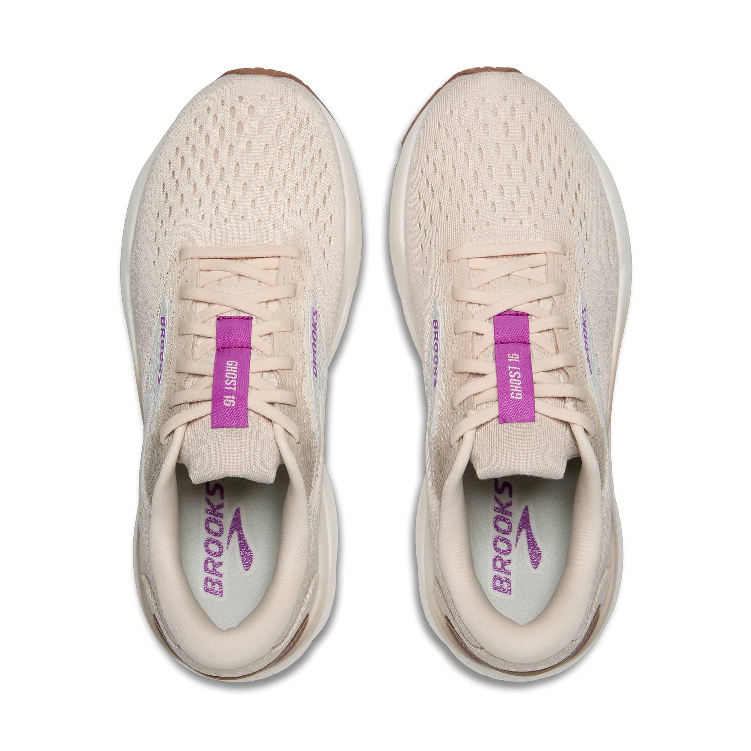 Estilosos, confortáveis ​​e com suporte. Estes tênis esportivos atendem a todos os requisitos. Experimente um conforto incomparável com o Tênis de Corrida Feminino Ghost 16 da Brooks, desenvolvido em uma deslumbrante combinação de cores: Pêssego Amêndoa, Coco e Roxo. Feito com 67,3% de materiais reciclados, este par é um produto com certificação CarbonNeutral®, tornando-o uma escolha ecológica para corrida e caminhada na rua. Beneficie-se do amortecimento leve e do cabedal aprimorado que garantem amortecimento macio e transições suaves a cada passo. Com drop de 12 mm na entressola e peso de apenas 241 g, este tênis oferece uma sensação equilibrada, perfeita para o seu guarda-roupa esportivo.
