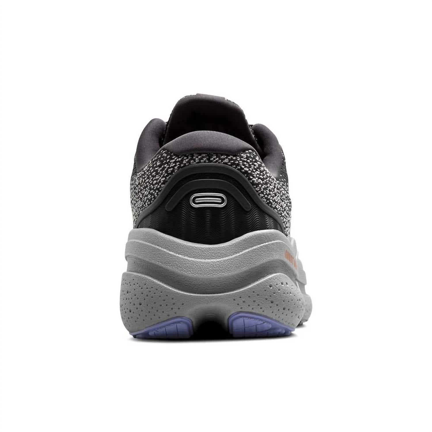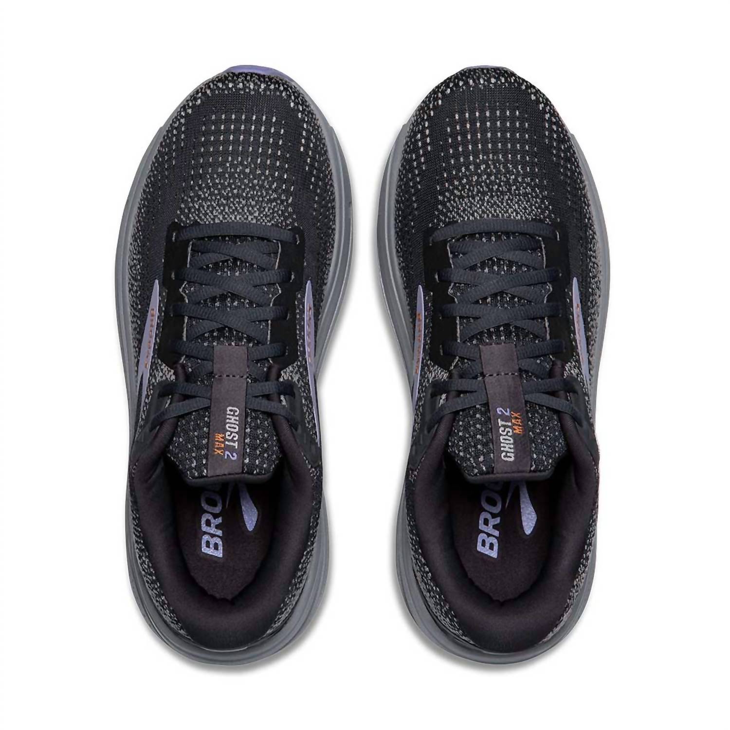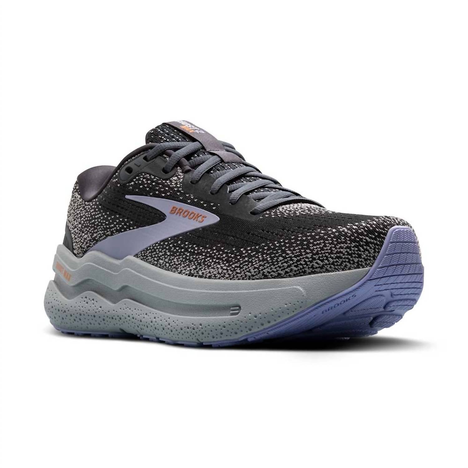 When fashion meets function. Experience the Brooks Women's Ghost Max 2 Running Shoes, designed in Ebony, Sweet Lavender, and Alloy colors for athleisure and fitness enthusiasts. These shoes feature super-stacked DNA LOFT v2 cushioning for plush, lightweight comfort and an updated GlideRoll Rocker for smooth transitions. The engineered mesh upper ensures breathability and flexibility, while the wider, stable platform offers a secure feel. Orthotic-friendly and certified PDAC A5500 diabetic shoes, these runners cater to foot conditions like plantar fasciitis, ensuring you stay comfortable on your longest walks or runs.