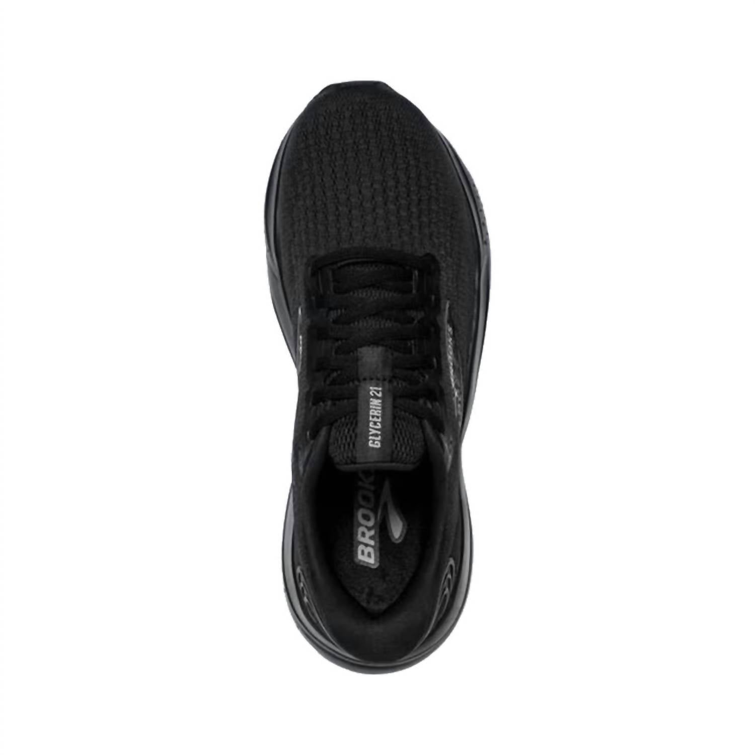 Estilosos, confortáveis ​​e com suporte. Estes tênis esportivos atendem a todos os requisitos. Descubra o Tênis de Corrida Feminino Glycerin 21 da BROOKS, desenvolvido para o máximo conforto com maciez suprema. Este tênis esportivo apresenta bico arredondado em uma elegante combinação de cores preto/preto/ébano, projetado para corrida de rua e tendências athleisure. O cabedal aerodinâmico é feito com 59,7% de materiais reciclados, evitando o descarte de 4,1 garrafas plásticas de aterros sanitários, garantindo estilo e sustentabilidade. Pesando 266,5 g e com entressola de 10 mm, ele oferece transições suaves e estáveis, perfeitas para ocasiões de fitness ou treino.