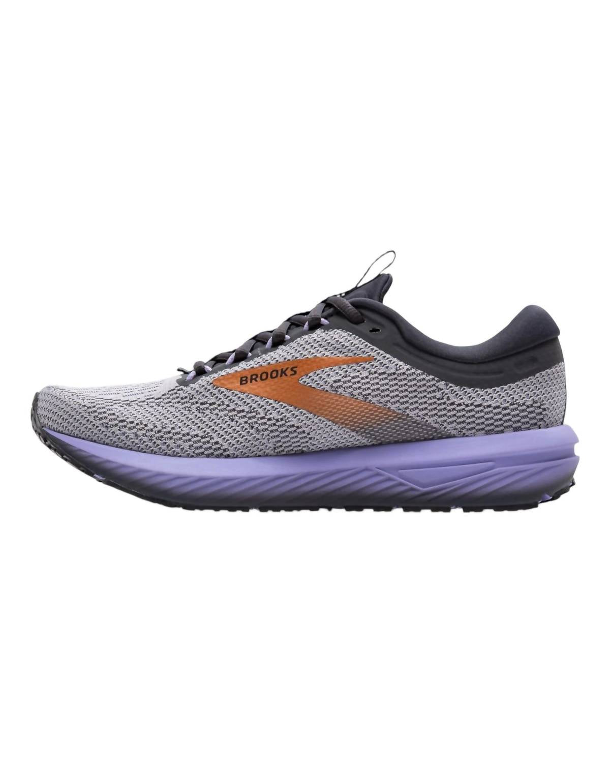 Treine com estilo com estes adoráveis ​​tênis esportivos. Entre em sintonia com o conforto do Tênis Feminino Brooks Revel 7, perfeito para atividades esportivas. Confeccionado em borracha durável, este calçado apresenta uma elegante mistura de tons de lavanda doce, ébano e liga metálica. O formato arredondado do bico proporciona amplitude e conforto a cada passada. Eleve seu treino com este tênis com design especializado.