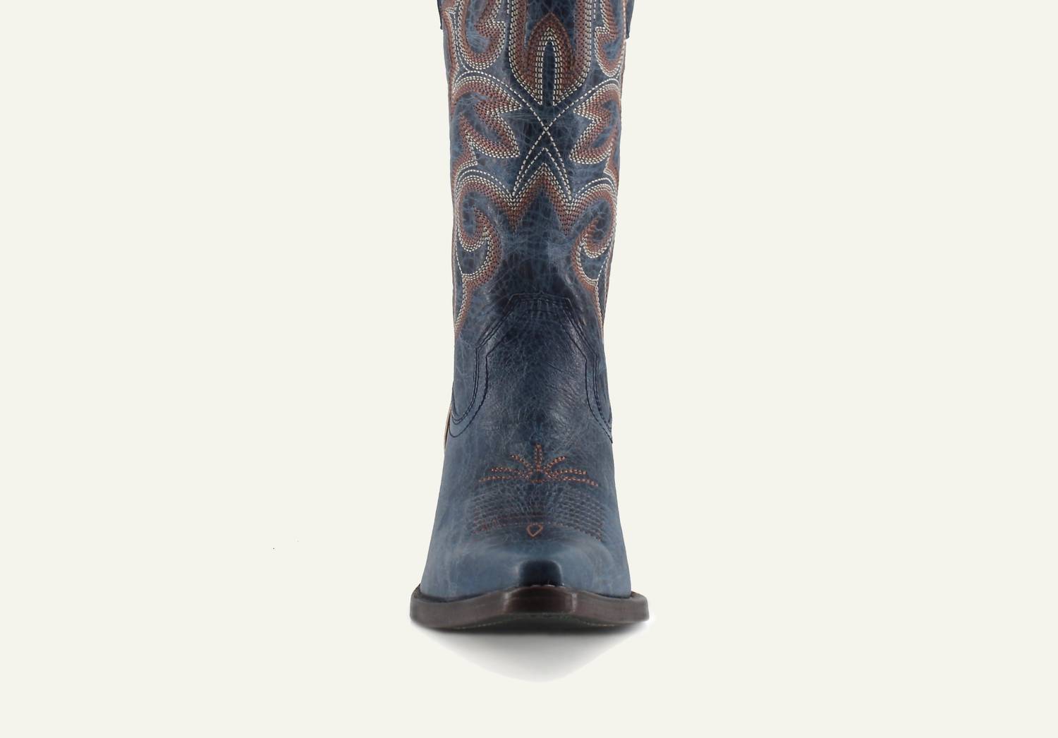 Tessa Fine Leather Cowgirl Boots by Buck & Brana are the epitome of elegance fused with Western tradition, designed for the modern woman. These petroleum-colored boots are crafted from premium leather, featuring a pointed toe and block heel that make them perfect for summer music festivals. These striking Western boots ensure a sophisticated and timeless appeal for any occasion, seamlessly blending style with comfort and trend. Enjoy the quintessential cowgirl look with this versatile pair, ideal for those who embrace bold fashion statements.
