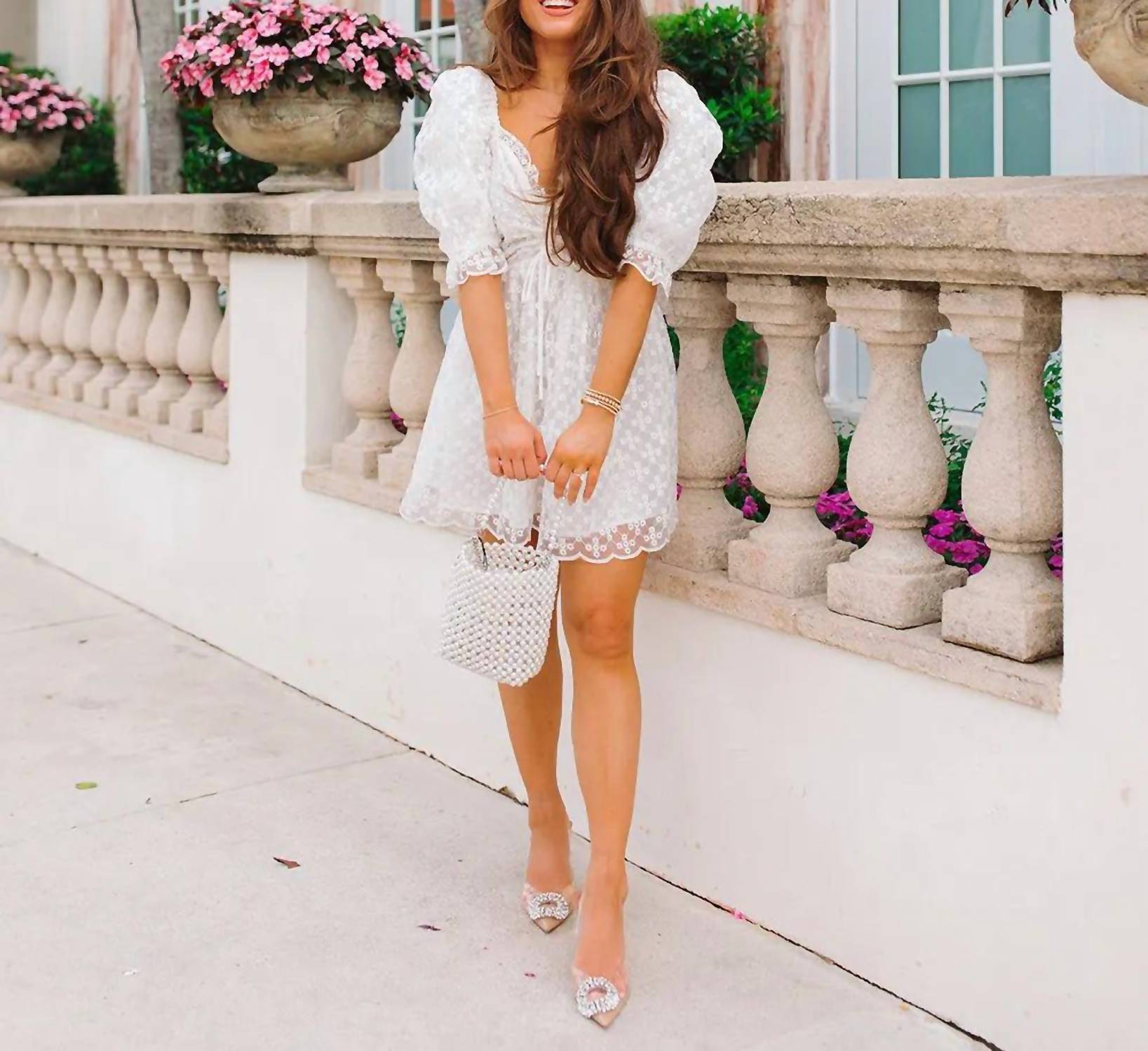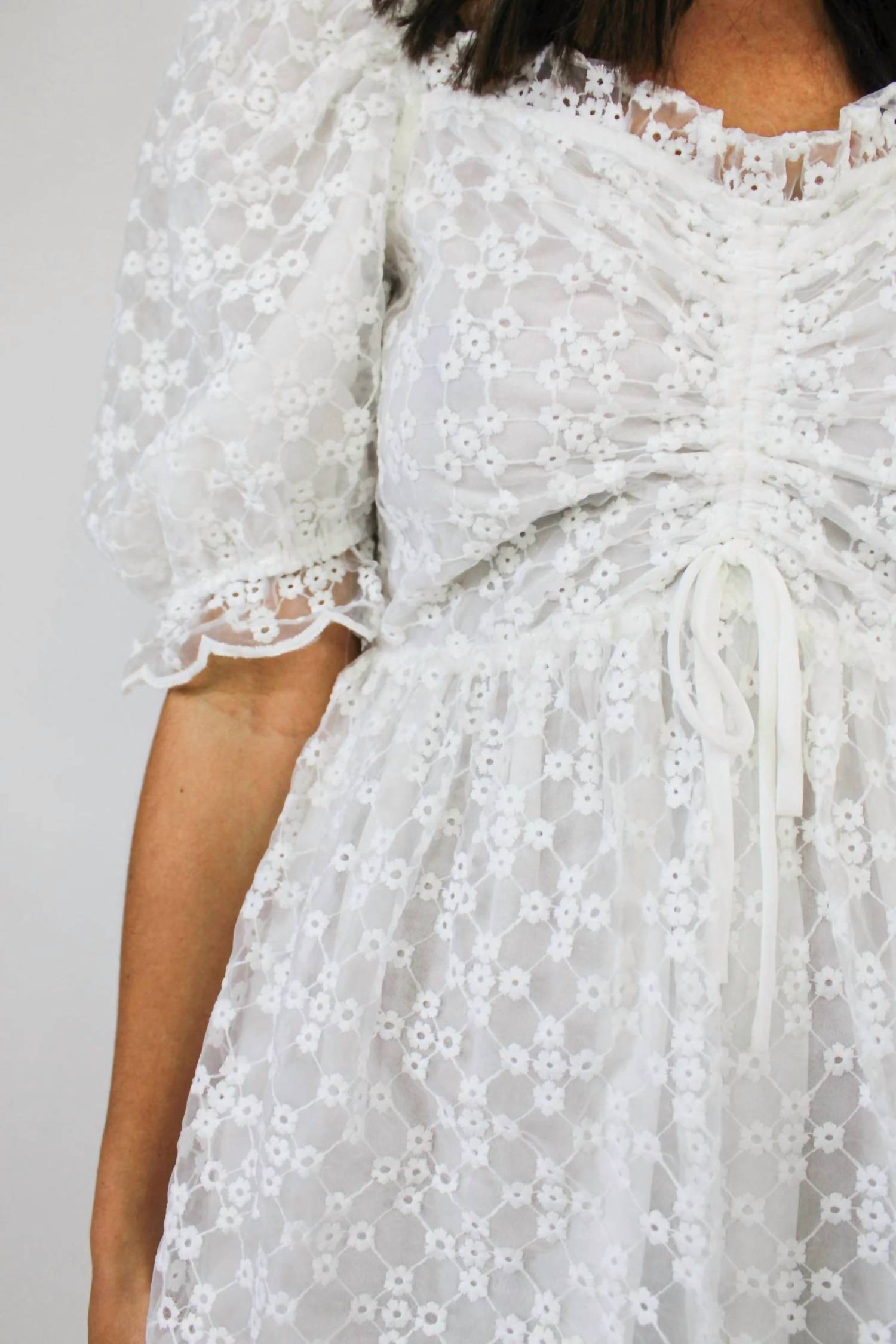 A short and breezy dress for those warmer days. Experience effortless elegance with the Floral Eyelet Babydoll Mini Dress by BuddyLove, perfect for Spring occasions. This dress features puff short sleeves and a smocked back for stretchable comfort. Made of 100% polyester, it showcases a charming A-line silhouette with a stylish scalloped hem and drawstring for adjustable fit. Designed with a classic pull-on closure, this dress promises a relaxed fit throughout the bust, waist, and hips, making it an ideal choice for your next anniversary celebration.