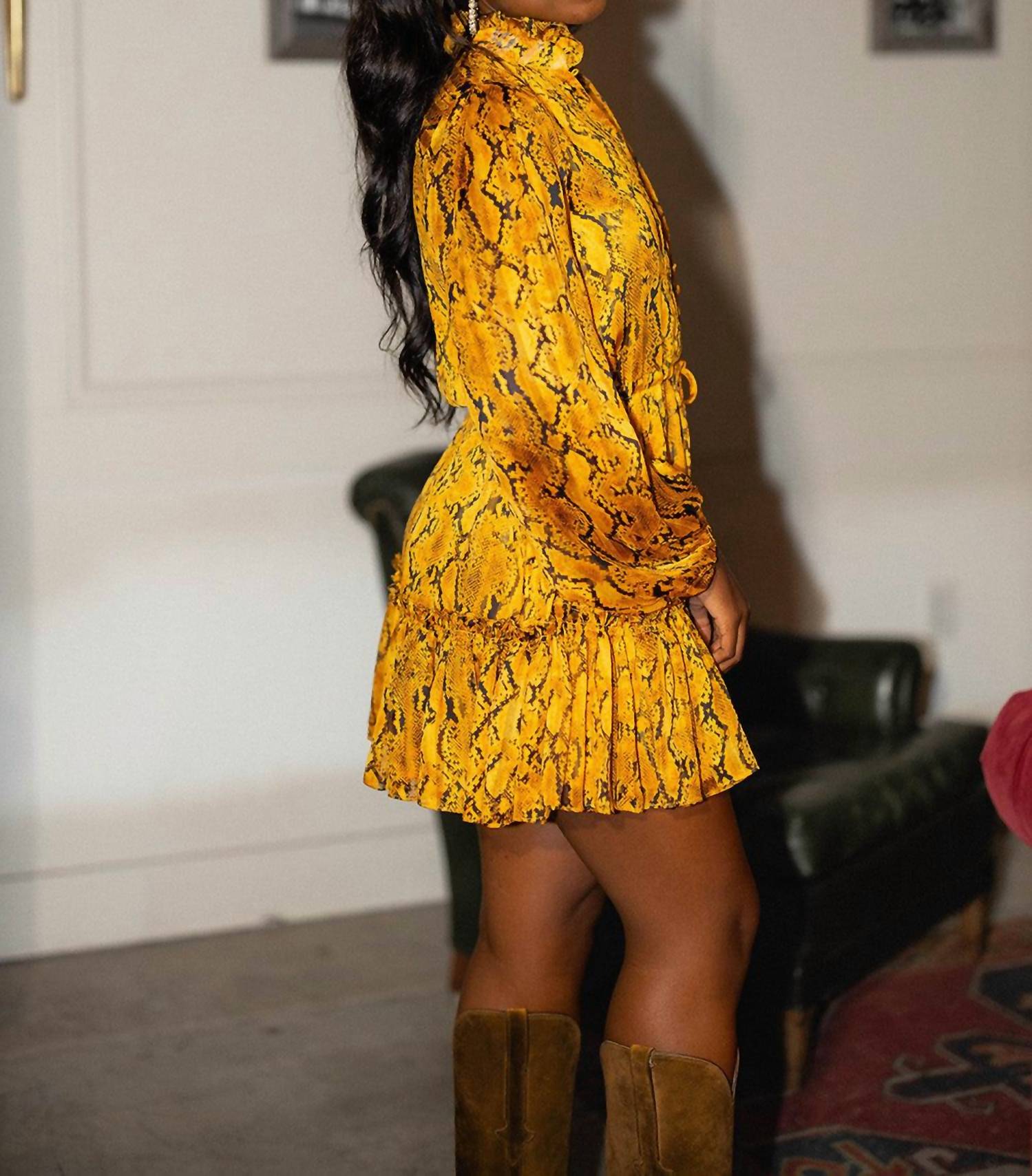 O vestido de manga longa perfeito para os meses mais frios. Este vestido apresenta detalhes de babados, cintura com cordão, mangas compridas com punhos elásticos e interior totalmente forrado. Feito de 100% poliéster, o tecido não tem elasticidade. O vestido tem caimento solto, veste perfeitamente e se adapta a todos os tamanhos de busto. O tamanho pequeno mede 60 cm do ombro à bainha.