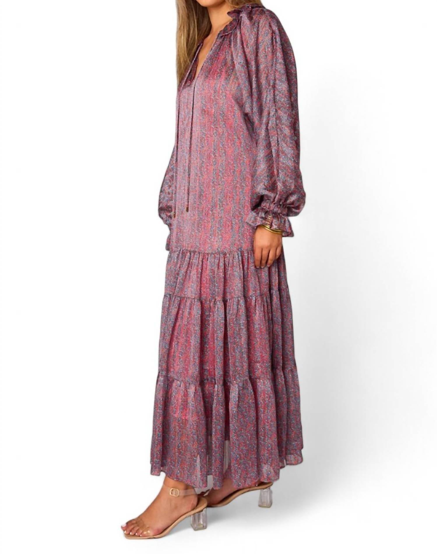 Combine este maxi com seu colar e sandálias favoritos para o look perfeito. Este vestido apresenta decote em V com cordão decorativo, mangas compridas com punhos franzidos e uma silhueta longa e fluida. Feito de 100% poliéster, o tecido não contém elasticidade. O vestido tem caimento solto, veste perfeitamente na maioria dos tamanhos de busto. O tamanho pequeno mede 137 cm do ombro à bainha.