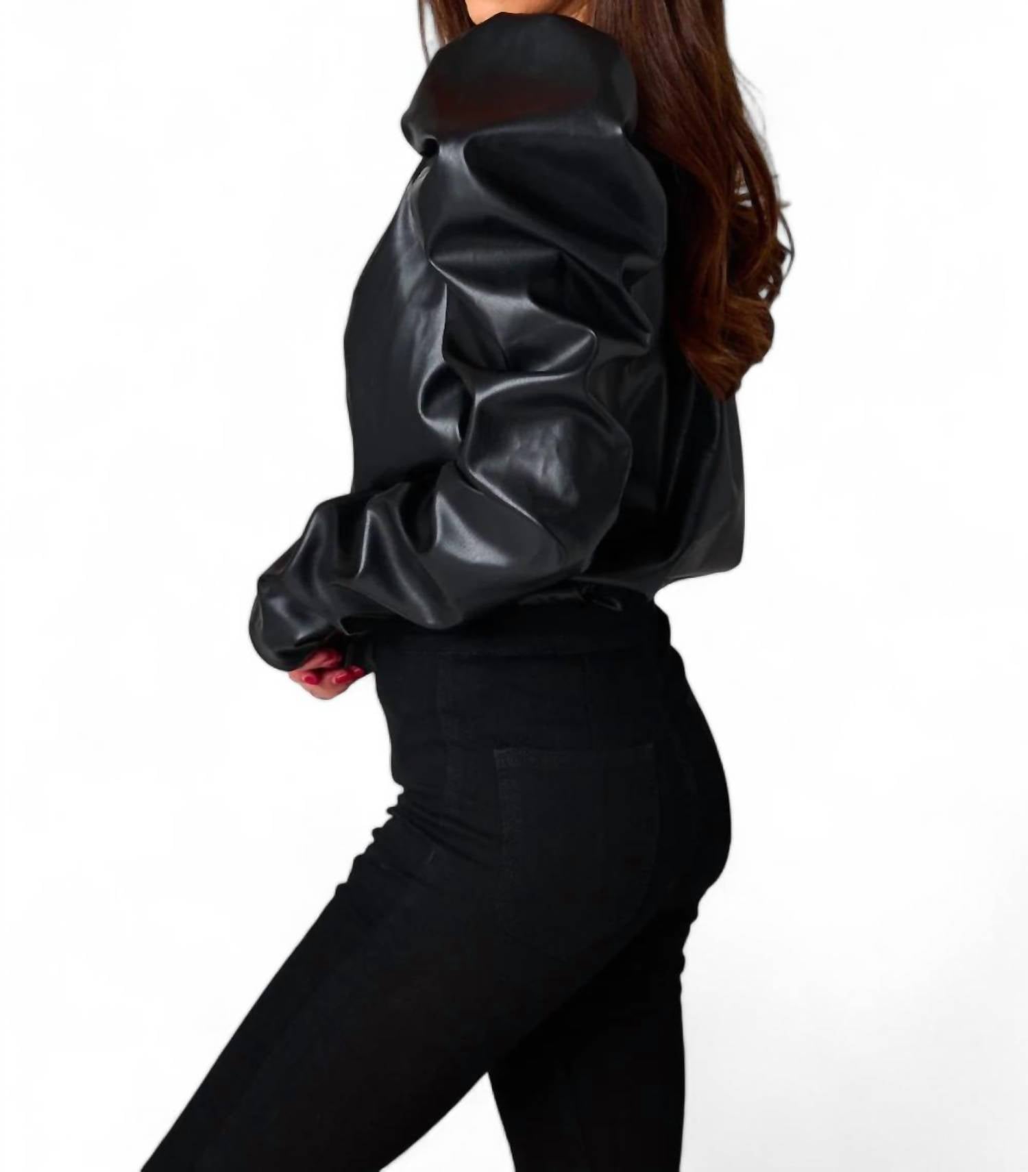 Quem não ama um bom body? Este body combina mangas bufantes soltas com um decote em V estiloso e fechos de pressão na parte inferior. Confeccionado em 100% poliéster e couro vegano, o tecido não estica. Apresenta um caimento solto e fiel ao tamanho, proporcionando espaço confortável em toda a região abdominal. O tamanho pequeno mede 54 cm do ombro à bainha.