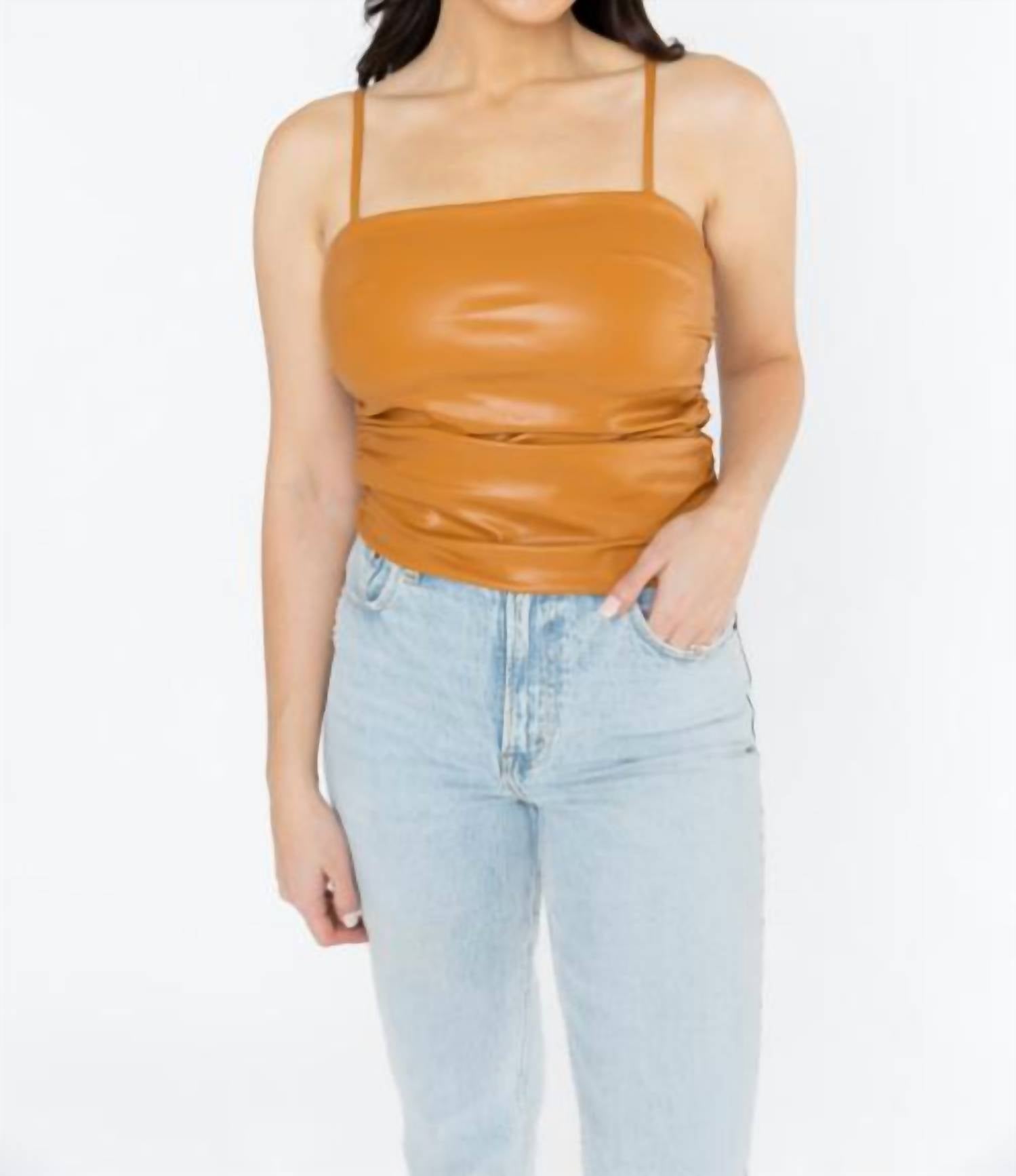 Esta regata clássica é perfeita para usar em camadas e é fofa o suficiente para ser usada sozinha. Apresentamos a regata Jolee Vegan Leather da BuddyLove em um elegante tom zibelina. Esta regata feminina estilosa possui alças finas, uma composição sofisticada de 50% PU e 50% algodão com forro 100% poliéster, oferecendo um comprimento levemente cropped, ideal para sobreposições. Projetada para um caimento perfeito com franzido lateral, ela vem com um prático fecho de zíper nas costas. O comprimento varia de 45 cm no tamanho PP a 49 cm no tamanho G. Sem bolsos e com estampa sólida, é uma peça versátil para o seu guarda-roupa. Instruções de cuidados não são fornecidas.