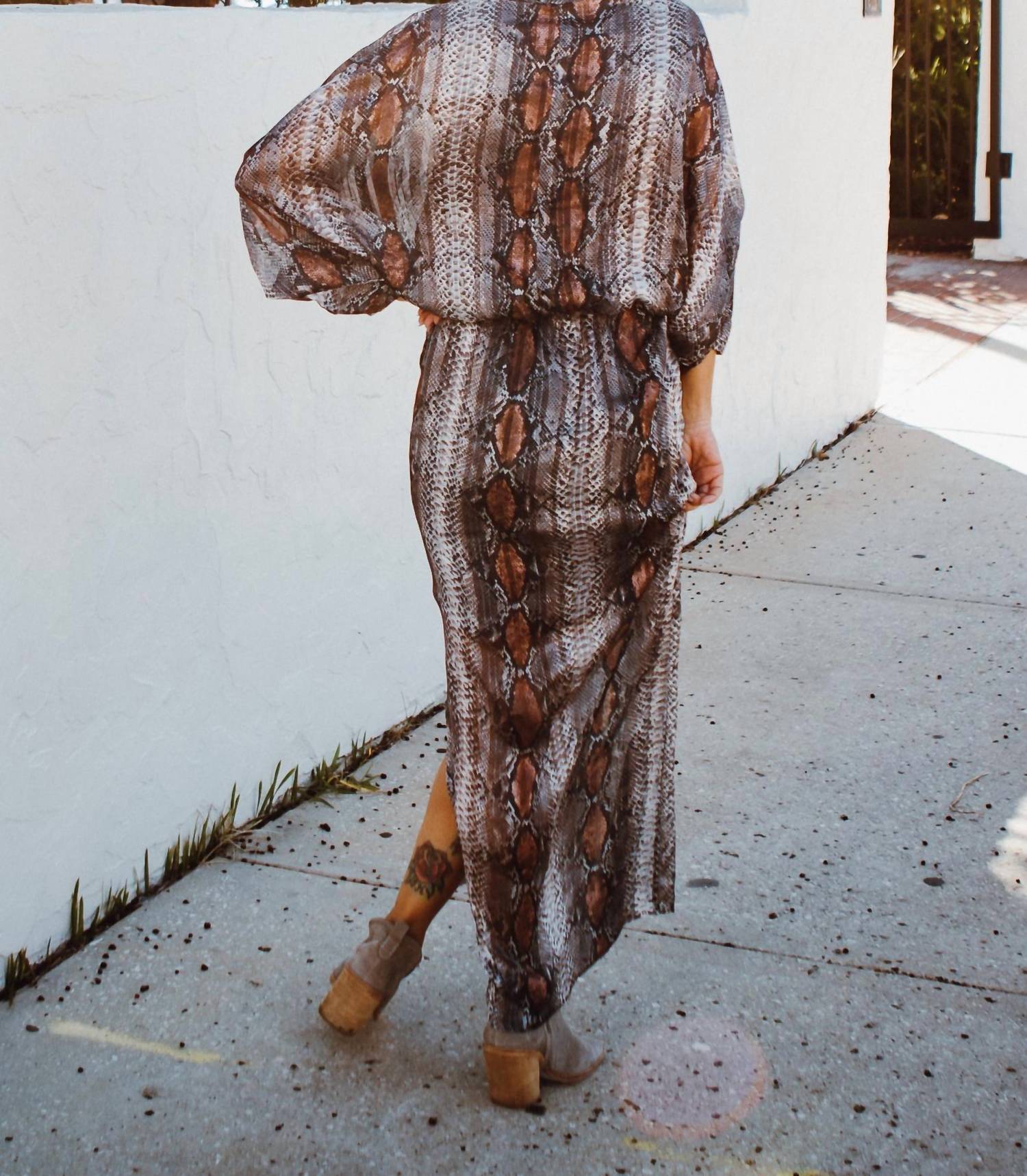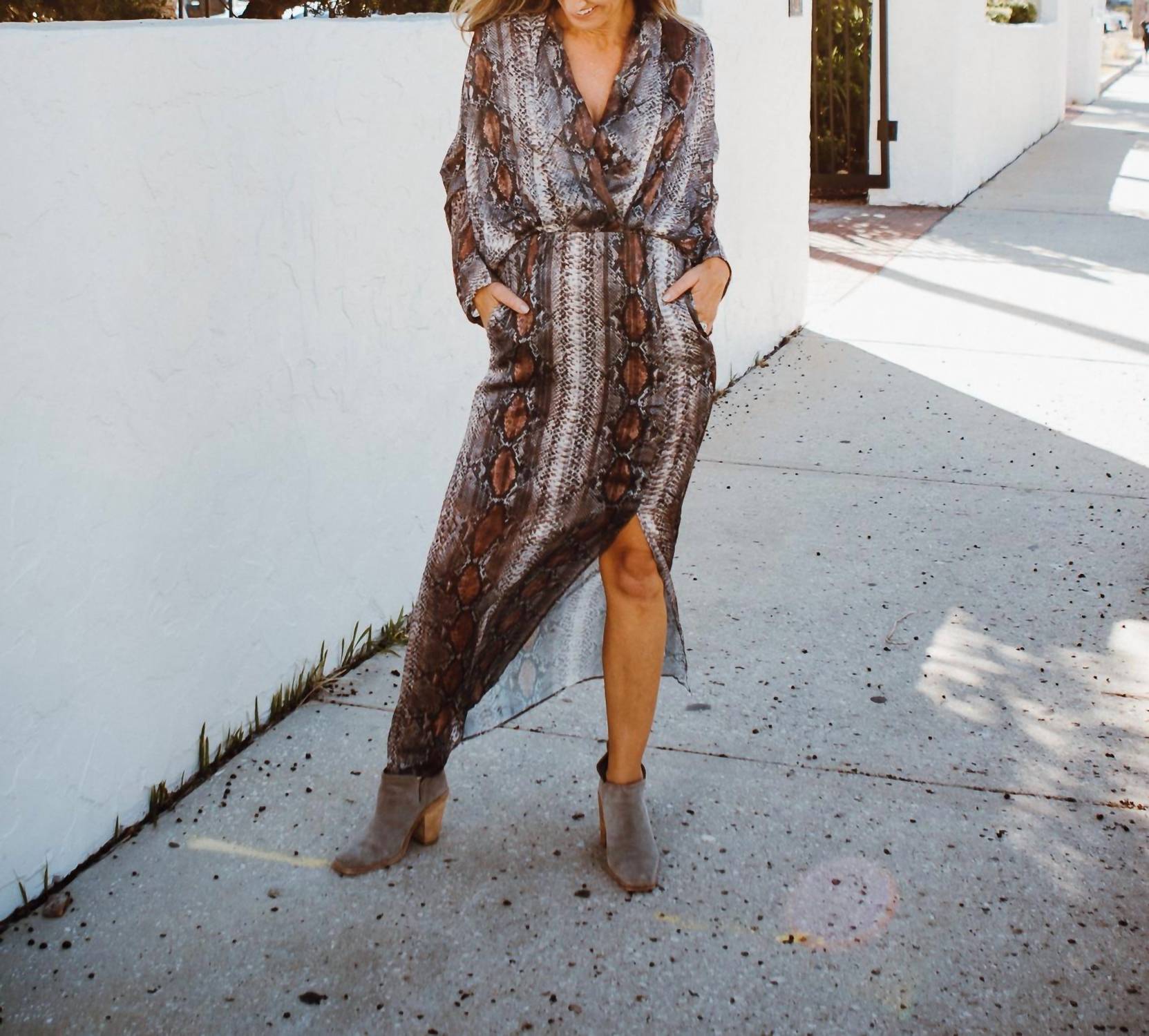 Vista o vestido longo de manga comprida Jude da BUDDYLOVE, uma escolha elegante com a deslumbrante estampa Slinky. Apresenta mangas compridas e um top solto contrastando com a cintura ajustada, resultando em um design elegante e longo, medindo 140 cm do ombro à bainha. Confeccionado em tecido que não estica, o vestido estilo pull-on é forrado até o joelho e finalizado com uma fenda estilosa na perna esquerda.