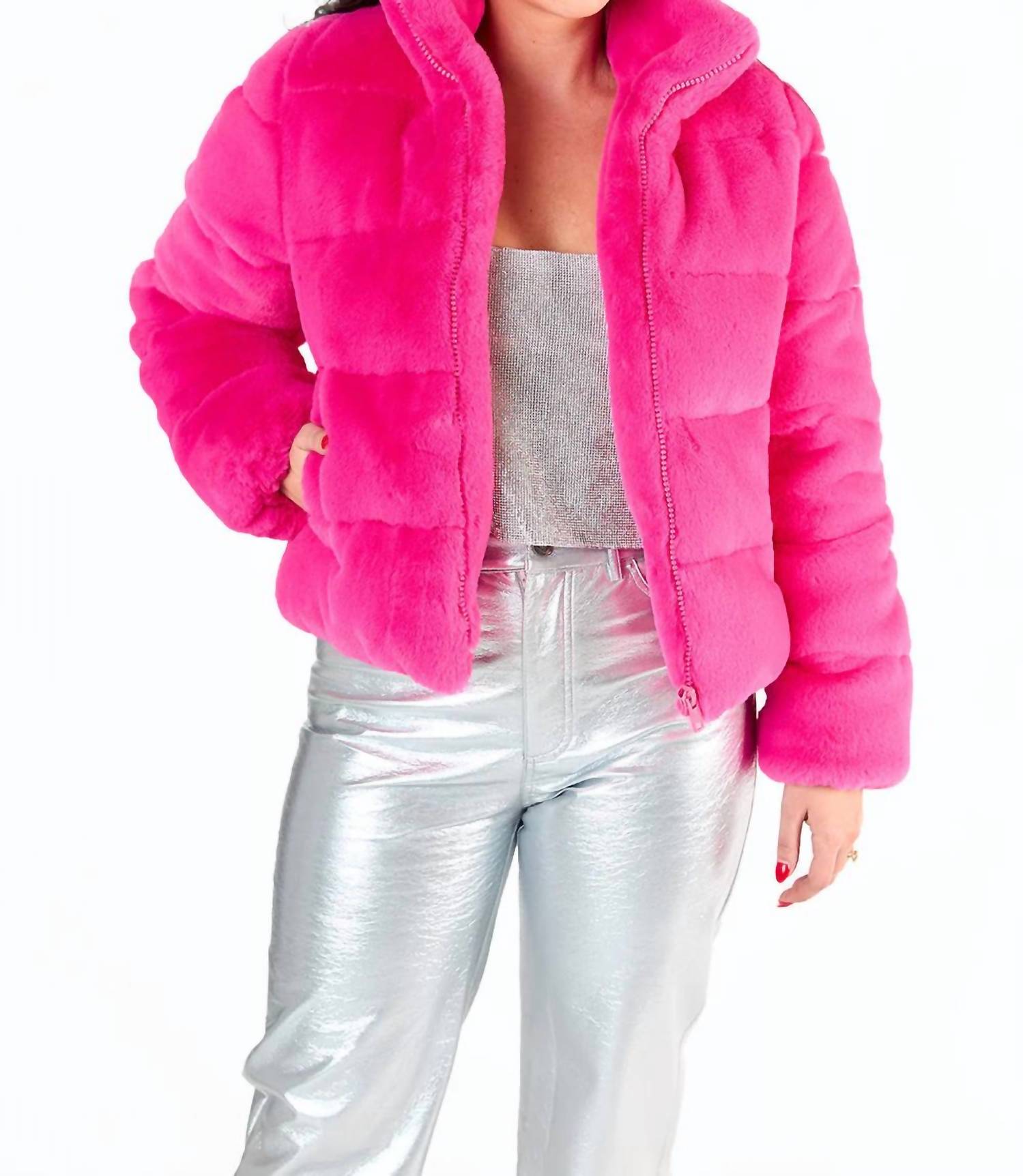 Nada é mais descolado do que esta jaqueta bomber com inspiração vintage. Mantenha-se aquecido e confortável com esta jaqueta puffer de pele sintética da Noella! Com bolsos, fecho de zíper e uma gola charmosa, esta jaqueta será a sua escolha perfeita para os dias frios! Tecido: o tecido não contém elasticidade. Material: 100% poliéster. Caimento: a jaqueta Noella se ajusta perfeitamente ao tamanho. Comprimento: o tamanho P mede 59 cm do ombro à bainha. Busto: se adapta à maioria dos tamanhos de busto. Cintura: ajuste relaxado.