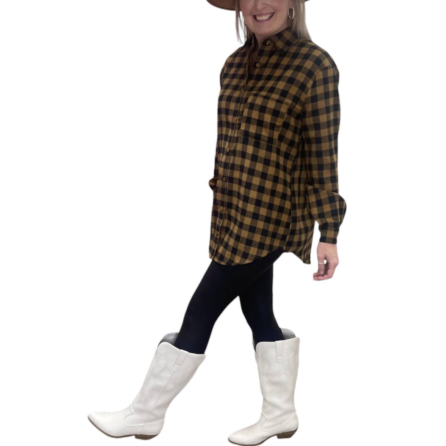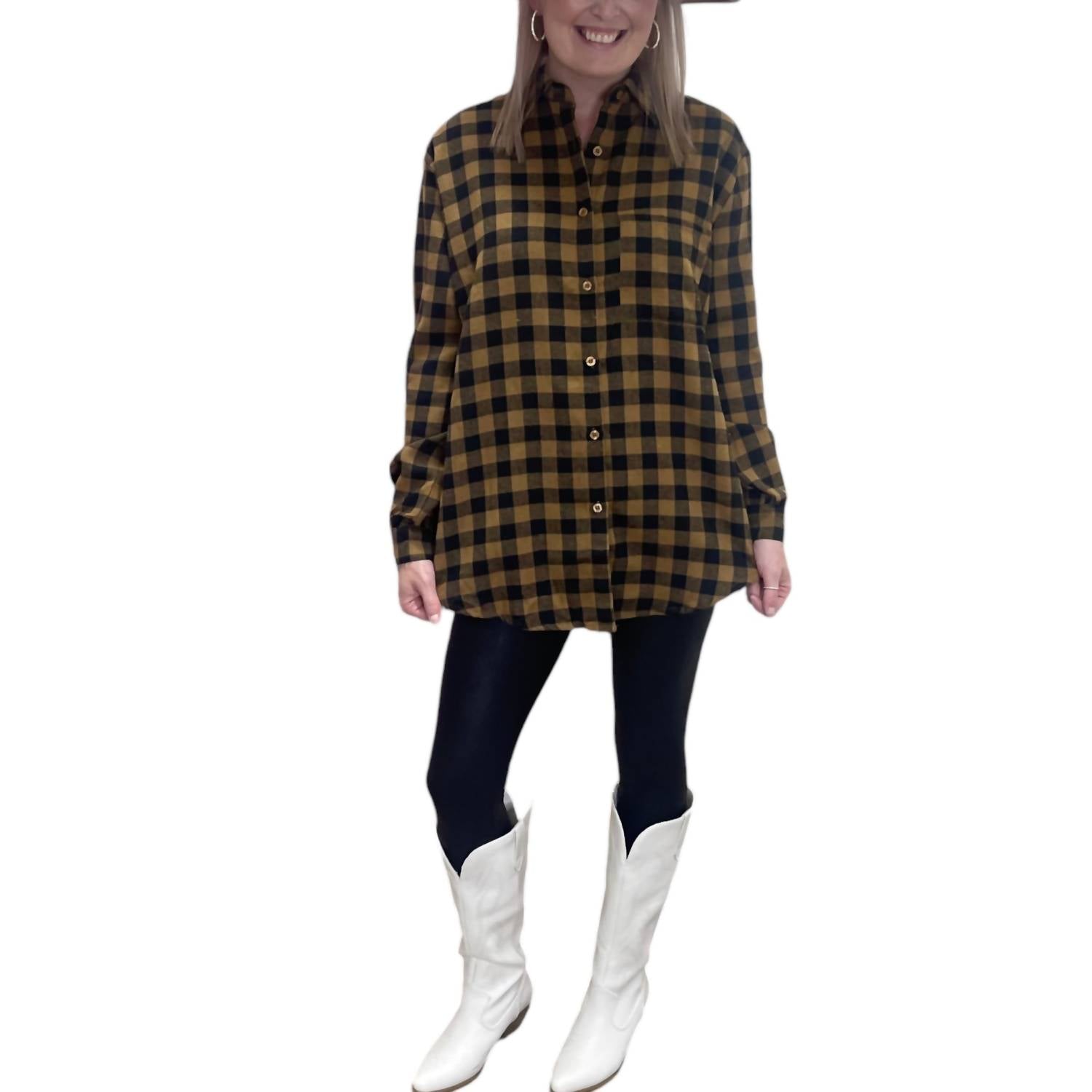 Ótimo caimento, design charmoso, tecido macio. Você vai adorar tudo nesta camiseta de manga comprida. A blusa de botões Portia é uma peça essencial e versátil! Ela tem botões na frente, mangas enroladas e um bolso frontal. A blusa tem caimento regular, medindo 76 cm do ombro à bainha no tamanho P, com cintura folgada. Confeccionada em uma mistura de 50% poliéster e 50% algodão, oferece um visual estruturado sem elasticidade. Janessa, de 1,70 m e 81 cm de busto, veste tamanho P.