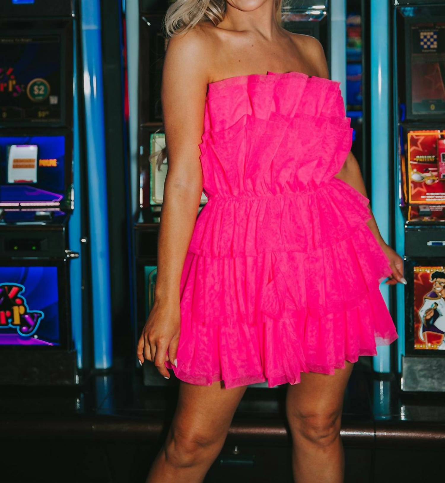 O tipo de vestido prático e elegante que você vai querer usar a qualquer hora do dia. Dance a noite toda com este minivestido Powder Puff! Com cós elástico, zíper na lateral e elástico na parte superior para evitar escorregões, este minivestido é tão fácil de usar quanto divertido! Detalhes do produto: Caimento: O vestido Powder Puff tem caimento justo. Comprimento: O tamanho pequeno mede 84 cm do ombro à bainha. Busto: Adapta-se à maioria dos tamanhos de busto. Cintura: O cós elástico permite elasticidade. Tecido: O tecido não tem elasticidade.