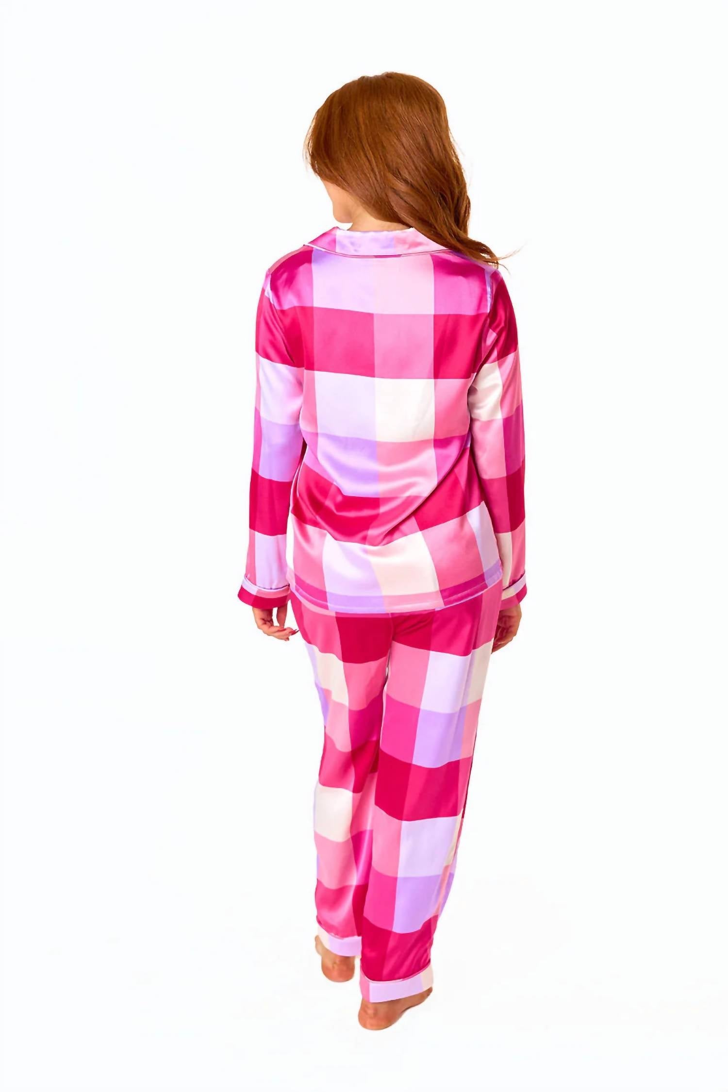 Combine com chinelos confortáveis ​​para um pijama perfeito. Eleve sua rotina noturna com o Conjunto de Pijama Ripley da BuddyLove, com uma estampa xadrez rosa divertida. Este conjunto inclui uma blusa de manga comprida com botões e pedras preciosas e uma calça aconchegante com amarração na cintura, ambas confeccionadas em 100% poliéster para máximo conforto. A blusa oferece um ajuste folgado no busto e mede 68 cm de comprimento (tamanho pequeno), enquanto a calça com cós elástico mede 94 cm da cintura à bainha. Perfeito para presentear ou presentear a si mesma, este conjunto promete conforto aconchegante com um toque de estilo.