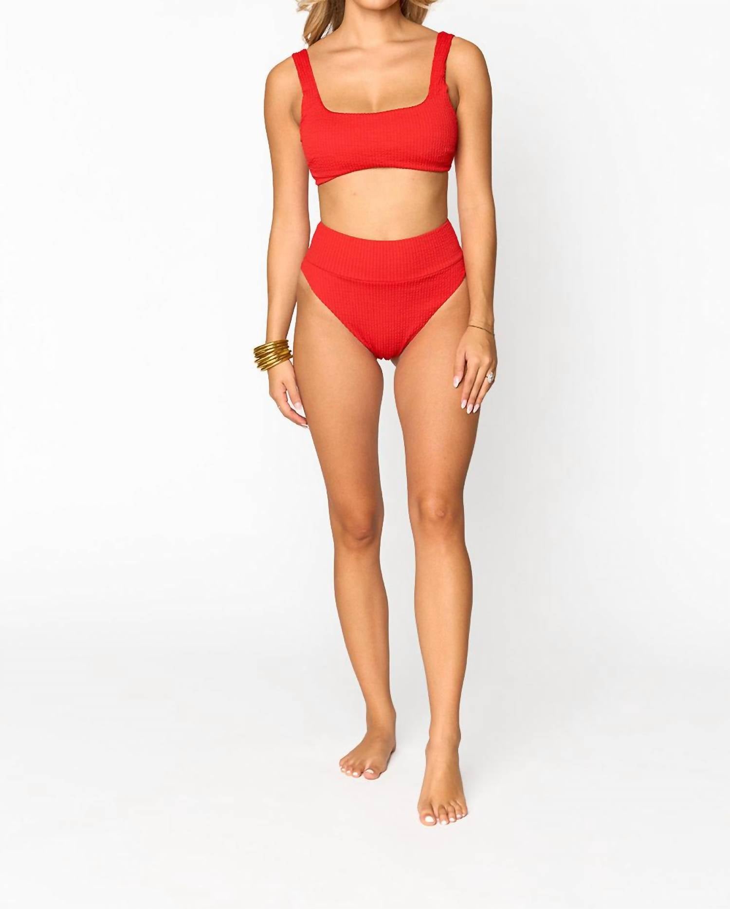 Saia na moda com o maiô Rita Hot da BUDDYLOVE, um dos favoritos do público para suas escapadas ensolaradas. Este conjunto de banho vermelho vibrante, com um bralette com decote amplo e arredondado e uma calcinha de biquíni chique e ousada de cintura alta, oferece conforto e estilo. Confeccionado em uma mistura de nylon, com 82% nylon e 17% elastano, este biquíni sólido de cintura alta se ajusta perfeitamente ao corpo, garantindo uma silhueta elegante. É o seu traje de banho favorito para a primavera e o verão, perfeito para arrasar.