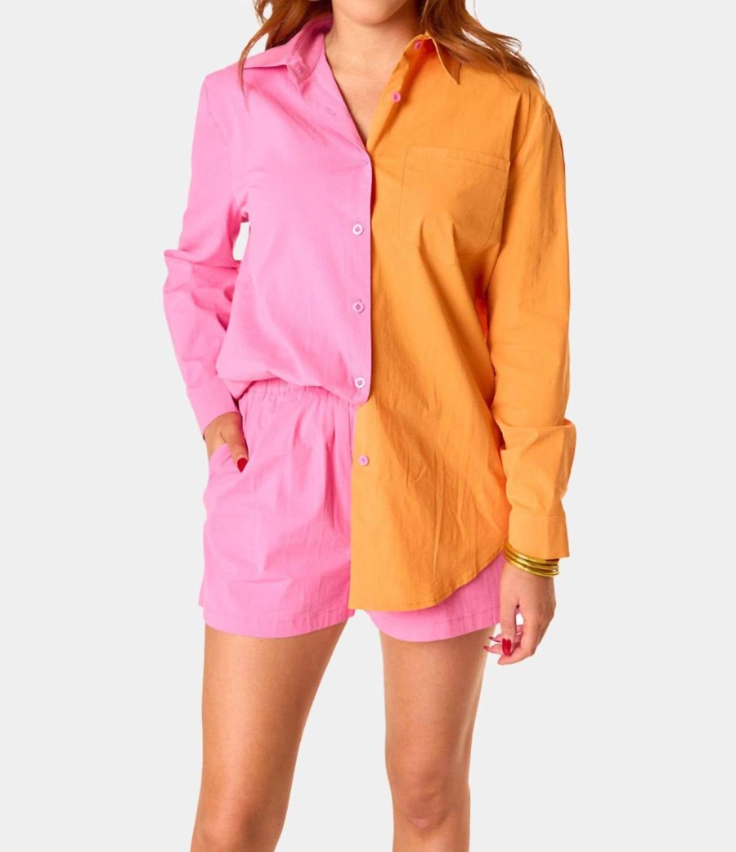 Apresentamos o Conjunto Sorbet Soiree da Buddylove, uma requintada opção de loungewear em uma paleta encantadora de rosa e laranja. O conjunto inclui uma camisa estilo Oxford de manga comprida, justa, com gola e botões funcionais, combinada com shorts combinando com cós elástico. Feito 100% rayon, este conjunto foi projetado para máximo conforto e estilo. Perfeito para viagens ou passeios, este conjunto de estampa sólida exemplifica a moda versátil.