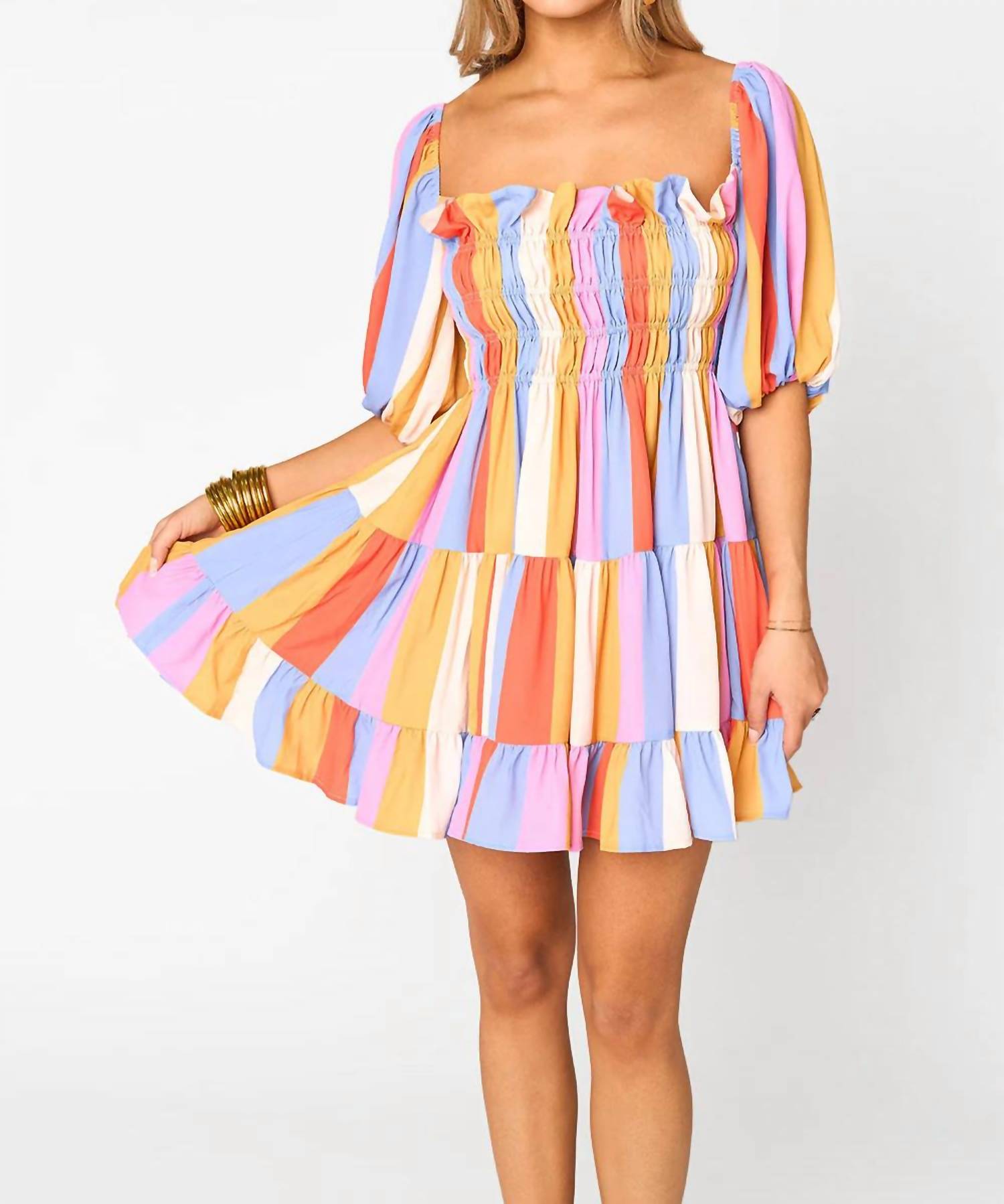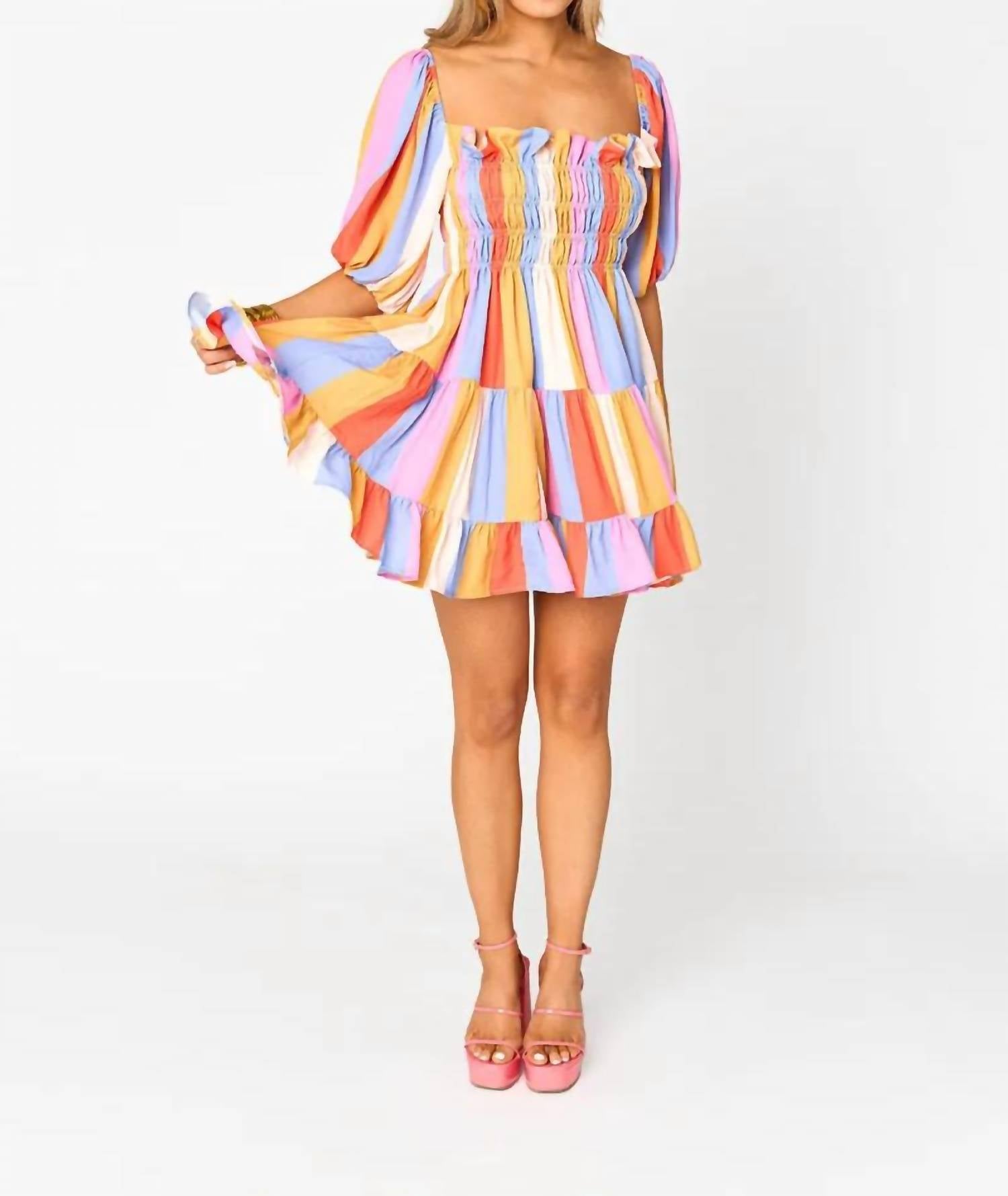 O tipo de vestido fácil e elegante que você vai usar durante toda a estação. Entre na elegância descontraída com o Minivestido Spencer Listrado da BuddyLove na vibrante estampa "Pool Boy". Este minivestido evasê apresenta mangas bufantes na altura do cotovelo e busto franzido, acentuado por uma cintura marcada que oferece um toque de elasticidade. Composição: 100% poliéster. Fecho: estilo pull-on. Cuidados: Lavagem em ciclo delicado, secar na horizontal. Perfeito para sua próxima festa de aniversário ou passeio no Dia dos Namorados.