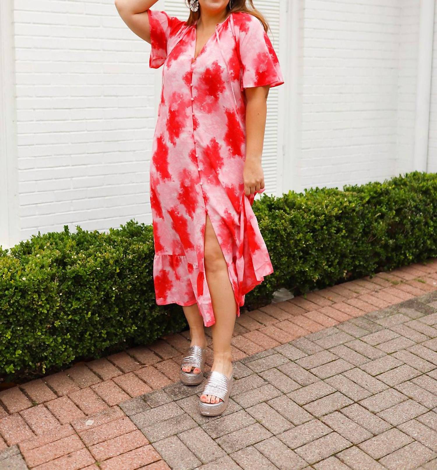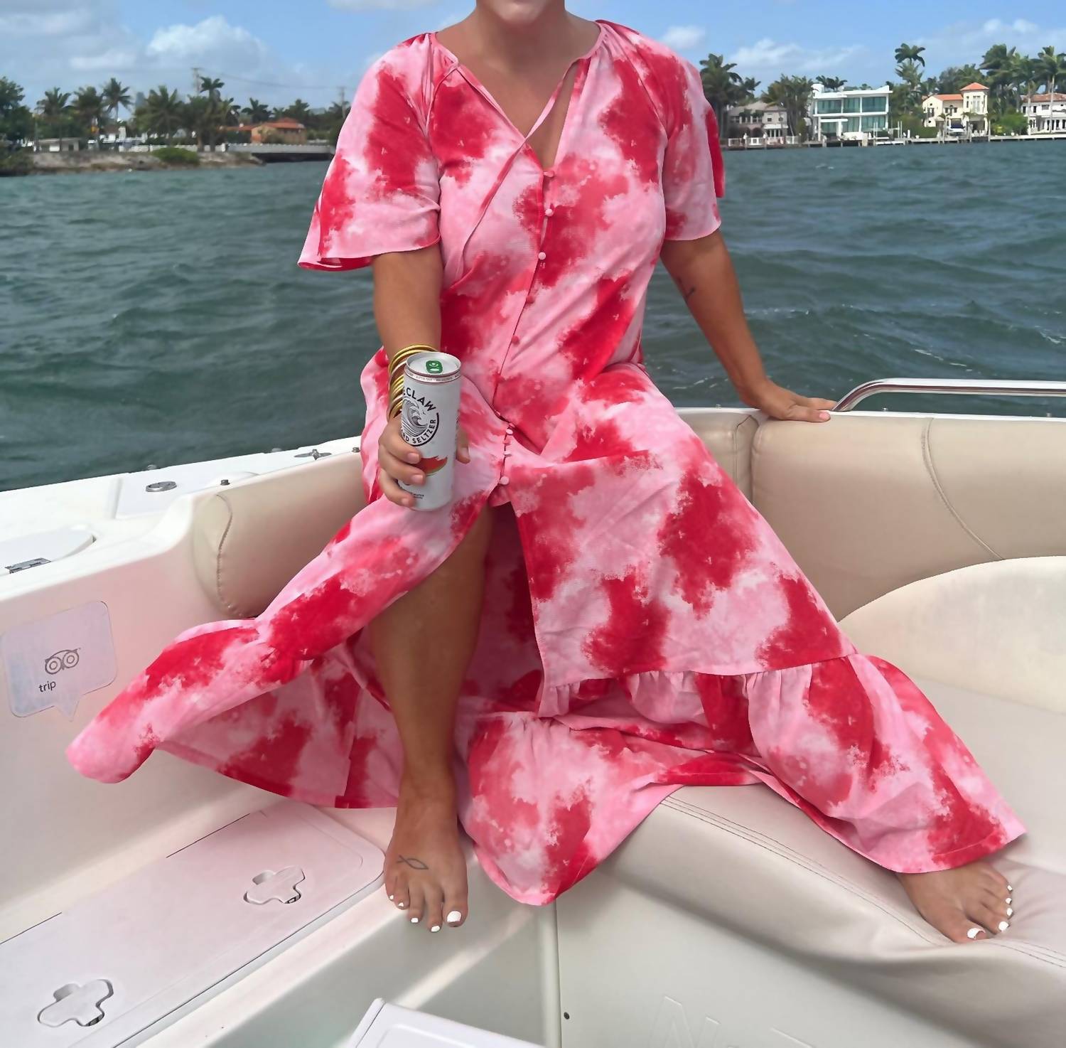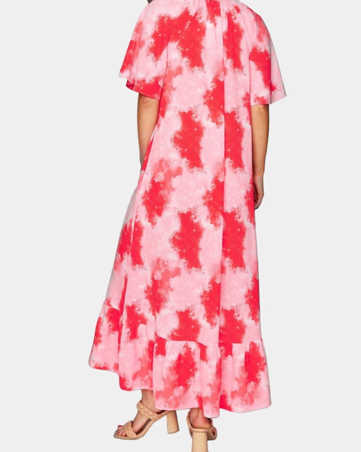 Um vestido longo que é tão fofo quanto confortável. Entre na elegância sem esforço com o Vestido Caftan Maxi Tullah da BUDDYLOVE, uma adição encantadora ao seu guarda-roupa com a vibrante estampa Sunset. Este elegante vestido maxi apresenta um corte relaxado com decote em V e mangas curtas, perfeito para ocasiões de primavera ou verão. Confeccionado em 100% poliéster, ele apresenta uma silhueta elegante de caftan que flui lindamente até um comprimento de 137 cm, do ombro à bainha, que vai até o chão. Ideal para usar nas férias, este vestido combina perfeitamente com saltos plataforma e joias para um look completo.