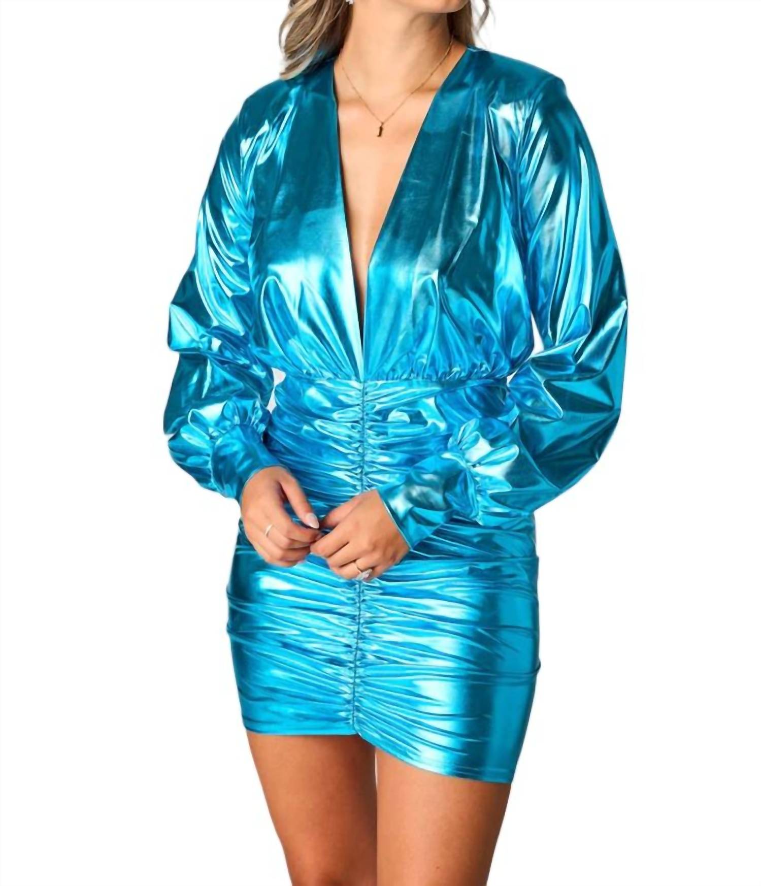 Bonito e confortável, este vestido de manga longa tem tudo. Modelagem justa. Comprimento mini. Elástico na parte inferior. Decote em V profundo. Mangas compridas soltas. Punhos. 96% poliéster. 4% elastano.