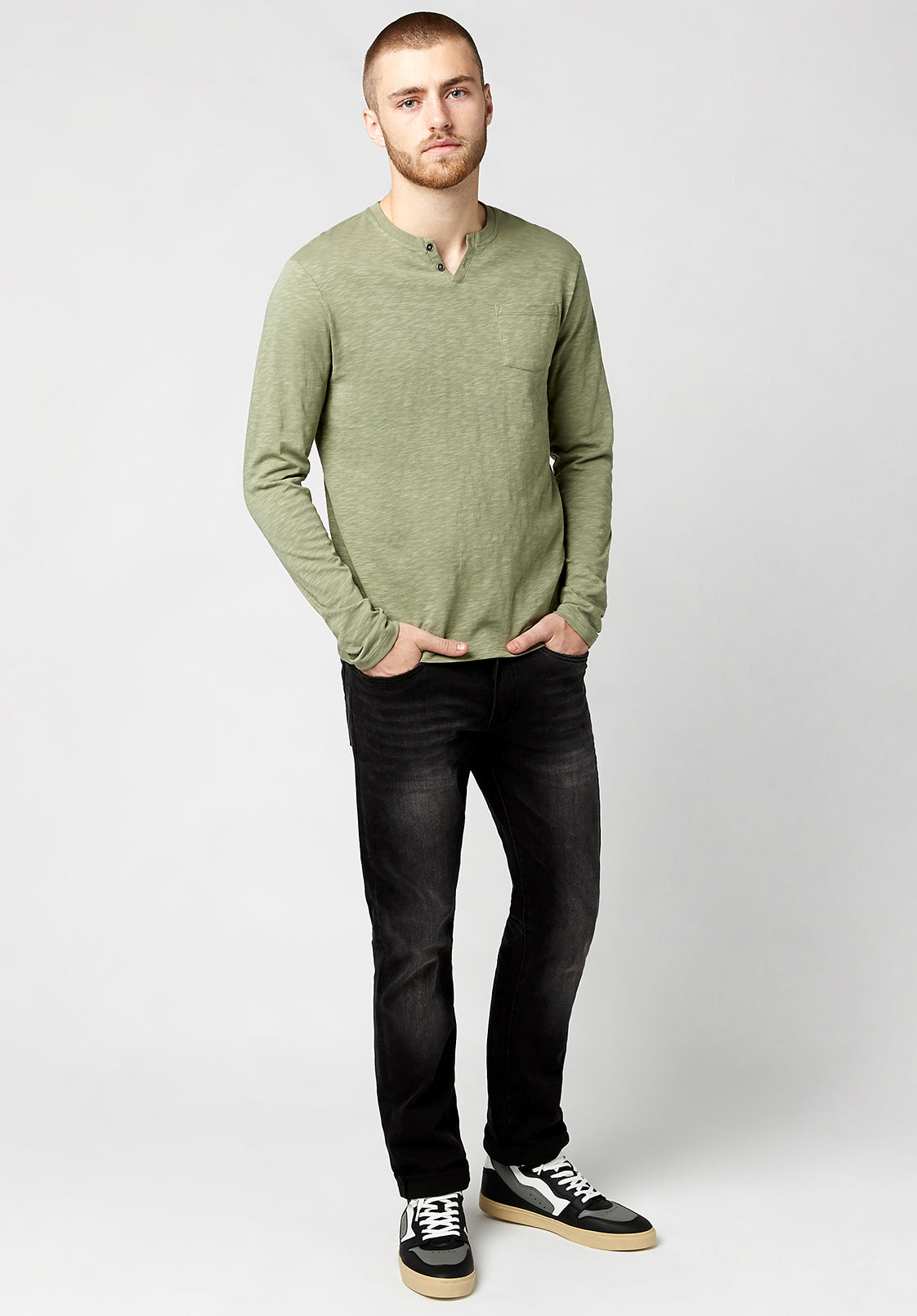 Leve e de manga longa | a Kattie é uma camisa slim fit perfeita para usar em camadas | Possui gola Henley relaxada com dois botões e bolso aplicado no peito | A textura de malha slub contribui para uma vibração relaxada | despretensiosa |