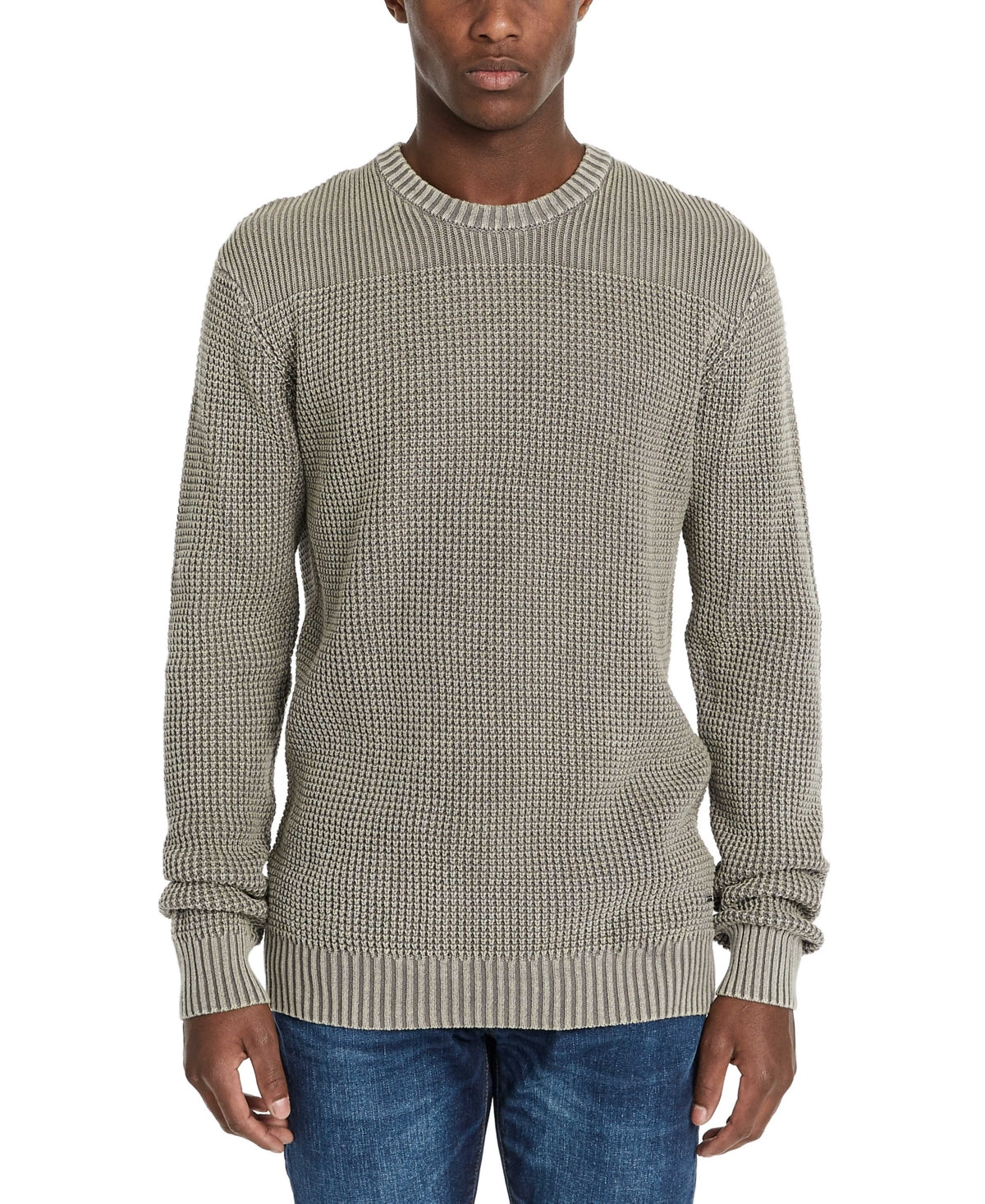À primeira vista, um suéter clássico de gola redonda, mas em uma inspeção mais detalhada, este tricô inovador é especial por ser tingido na peça e lavado com ácido, o que lhe confere um apelo bicolor. O suéter perfeito para usar com jeans Buffalo do outono ao inverno. (Liquidação)