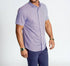 Introducing the Buki Locally Famous Short Sleeve Tech Shirt, a must-have for effortless style and comfort. Made with Buki's revolutionary Core Tech fabric, this short-sleeve shirt features a vibrant geometric print in blue and purple. Designed with a button closure and collar, it is wrinkle-resistant and has cooling yarn technology for unmatched breathability. Care: Machine wash. Made without pockets, this shirt is perfect for travel and minimalist styles.