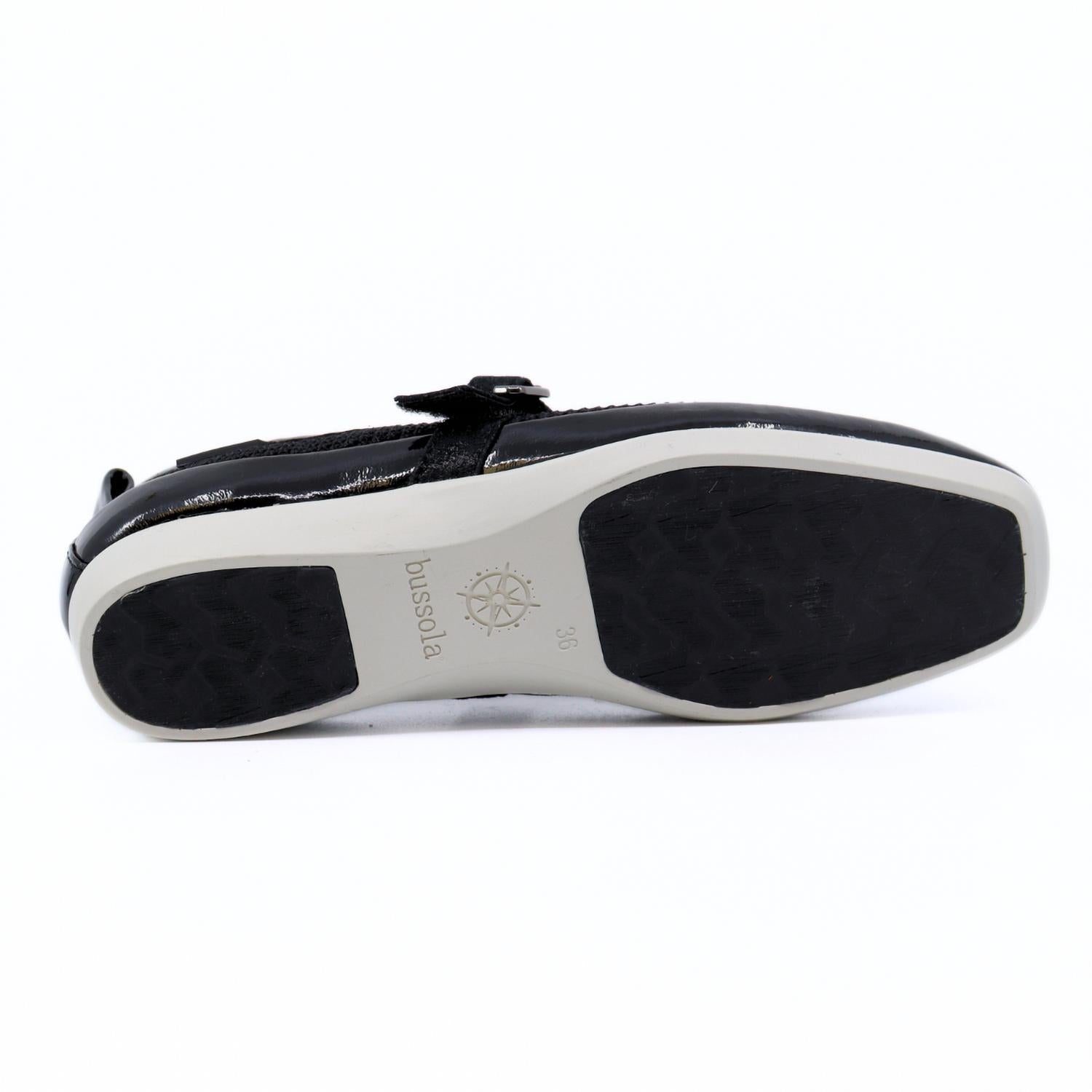 Step into style with the Vanya Nero Knit Mesh Mary Jane by Bussola, featuring a modern twist on the classic design. Crafted with a breathable black mesh upper and sleek patent leather trims, these ballet flats offer an impeccable blend of style and comfort. The buckle velcro strap ensures a secure, adjustable fit, while the squared toe and flat heel emphasize comfort for day-long wear. Perfect for various occasions, these flats cater to medium shoe widths and seamlessly blend into your fall workwear wardrobe.