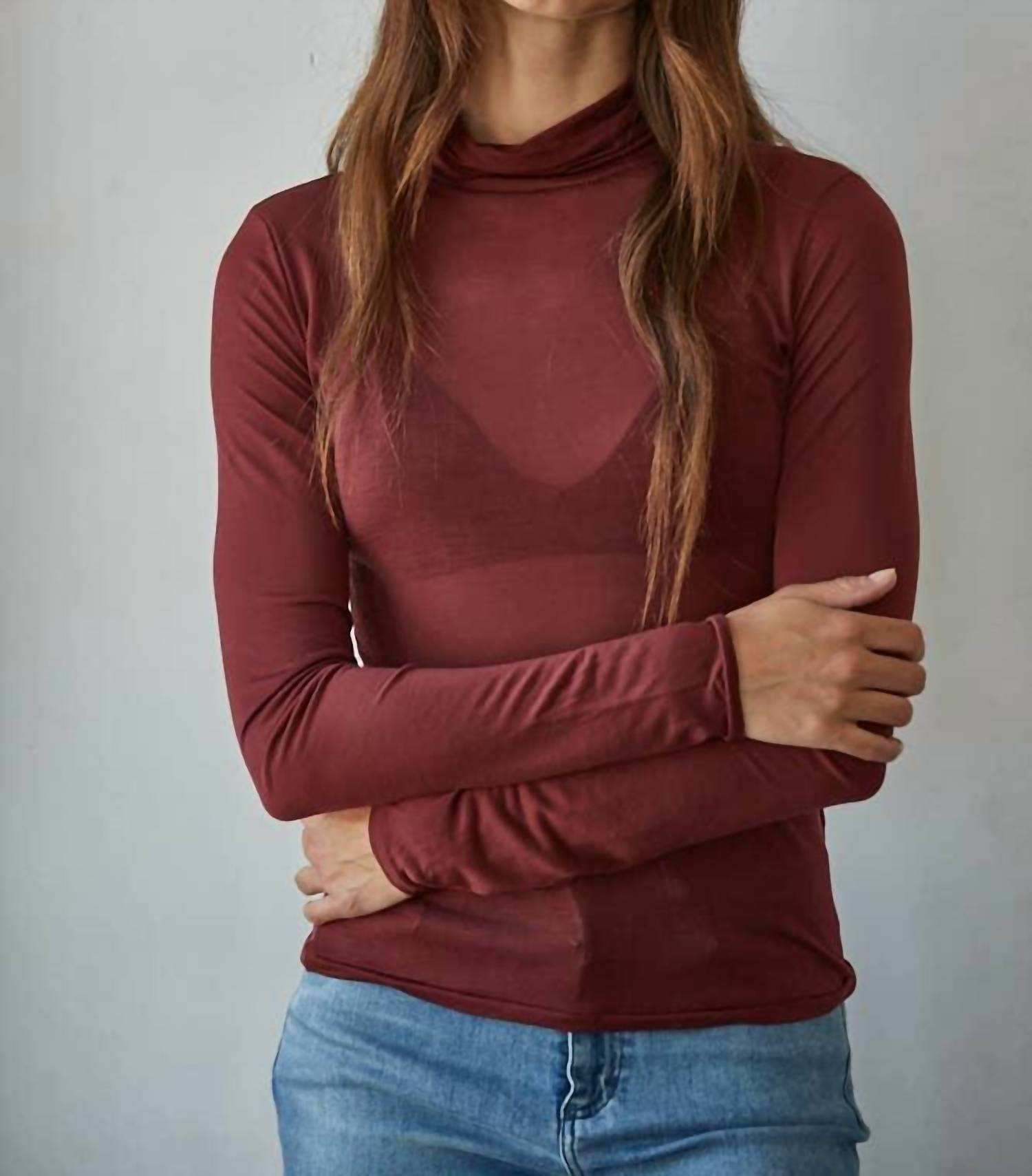 Embrace elegance with the By Together Knit Tencel Jersey Turtleneck Top in a captivating burgundy hue. This long sleeve top features a sheer design, offering both softness and stretch for maximum comfort. Composition: 100% Tencel. Closure type: Pull on. Perfect for vacation and streetwear during the spring season.