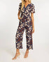 Chic addition to your wardrobe, ideal for a Holiday Party in the Fall season. Features short sleeves crafted from 100% soft viscose crepe, ensuring comfort and style. Unique Ginko Block Navy print with intricate floral details and rust piping on the side stripes offers a modern and artistic touch. Featuring a side seam zipper closure for easy wear, this jumpsuit includes an elastic waistband and a smocked back for a perfect, flexible fit.