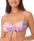 Aposte em um visual retrô dramático na praia com um top de biquíni com alças finas e ajustáveis da California Waves | estilizado com uma estampa abstrata dos anos 80. | Bojos removíveis | Alças ajustáveis; alças autoamarráveis no meio das costas | Decote tipo bandeau ajustável com cordões no centro da frente | Forrado |
