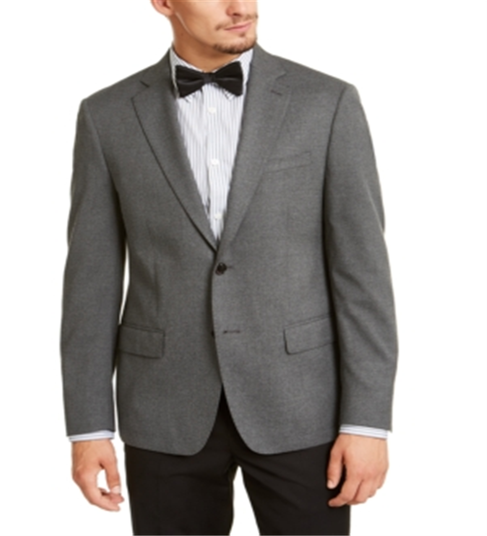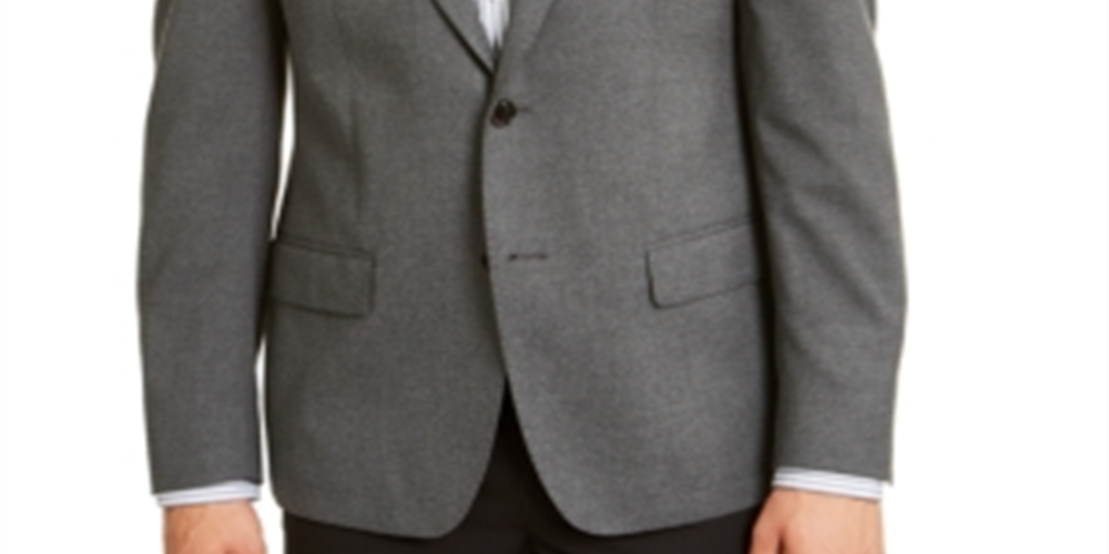Terno masculino Calvin Klein com abotoamento simples, mesclado, slim fit, cinza, separado, tamanho 42