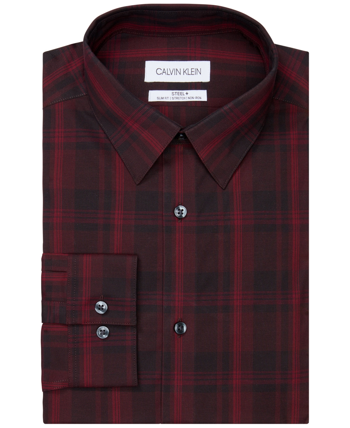 Camisa social Calvin Klein masculina slim fit, elástica, sem passar a ferro, vermelha, tamanho 16x34x35