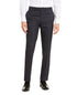 Calças slim fit ligeiramente abaixo da cintura; slim fit nos quadris e coxas com abertura reta ou estreita nas pernas | Frente plana; bainha acabada; sem punho | Braguilha com zíper e fecho de botão e gancho; passantes para cinto | Dois bolsos laterais; dois bolsos embutidos traseiros com botão | Vinco permanente; padrão mini-grade; desempenho elástico | Poliéster/viscose/elastano