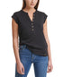 Calvin Klein Feminino Manga Curta Henley Preto Tamanho Médio