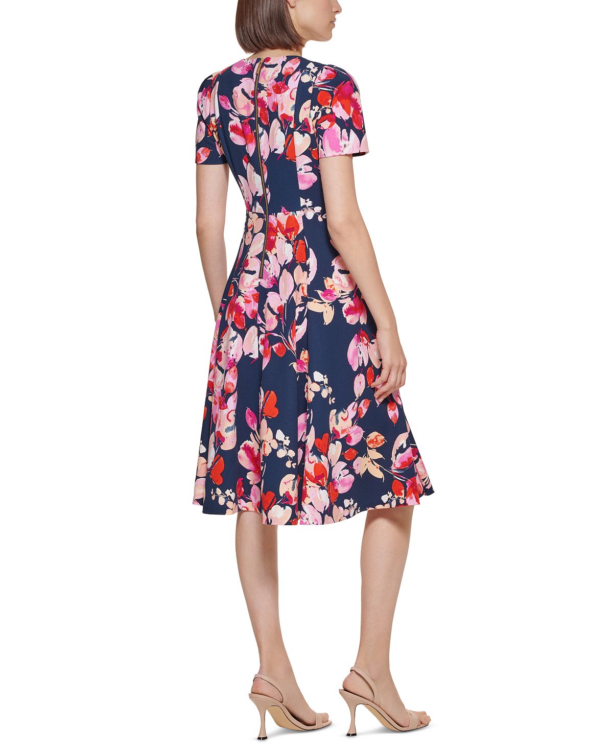 Capture uma sensação romântica com o pequeno vestido estampado floral da Calvin Klein | um corte elegante e silhueta evasê finalizada com lindas mangas bufantes. | Projetado para se ajustar e valorizar pessoas de 1,62 m ou menos | Decote redondo; silhueta evasê e ajustada | Fecho de zíper nas costas expostas | Mangas curtas bufantes | PP = 0P-2P