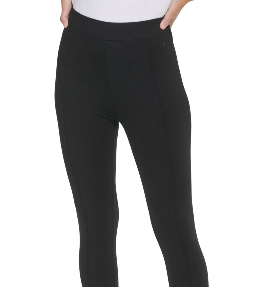 Calça legging feminina Calvin Klein com costura franzida e comprimento total, preta, tamanho pequeno