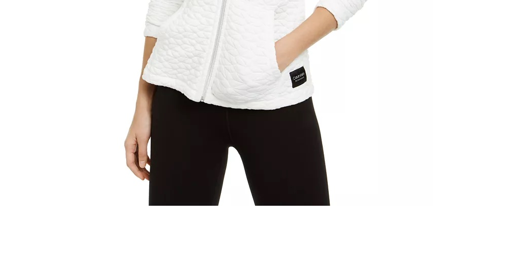 Ask a question about Jaqueta com capuz Calvin Klein Jacquard assimétrica com zíper, tamanho grande, areia