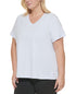 Camiseta Calvin Klein Feminina com Logo Patch e Gola V Azul Tamanho 1X