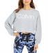 Calvin Klein Moletom feminino com estampa de logo e ombros caídos, cinza, tamanho médio