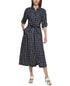 Arrase com o vestido-camisa em corte A da Calvin Klein, em xadrez | com cinto autoamarrável. | Comprimento aproximado de 115 cm, do centro do pescoço até a bainha. O comprimento é baseado no tamanho 6 e varia 1/4 entre os tamanhos. | Modelagem fiel ao tamanho; peça seu tamanho normal. | Ajustado no busto e na cintura; saia estruturada em corte A, ligeiramente acima dos quadris. | Vestido com botões frontais. | Gola pontuda. | Silhueta de vestido-camisa em corte A. | Fechos frontais ocultos com botões.