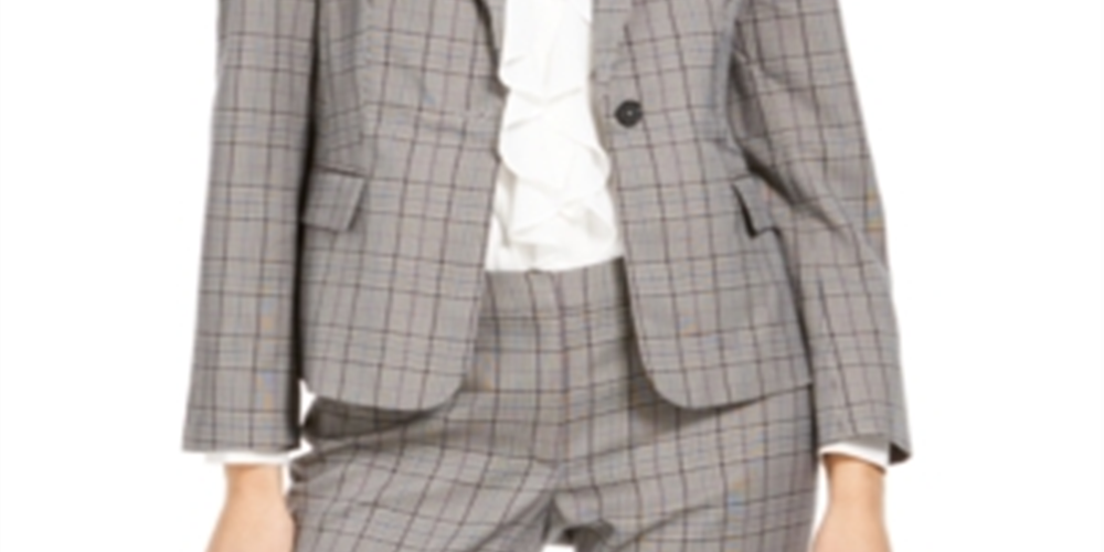 Calvin Klein Blazer Xadrez Feminino de Um Botão Cinza Tamanho 4