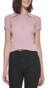 Calvin Klein Suéter Polo Feminino Canelado Rosa Tamanho Pequeno Médio