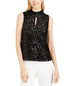 Blusa Calvin Klein Feminina com Lantejoulas e Gola Redonda, Preta, Tamanho Médio